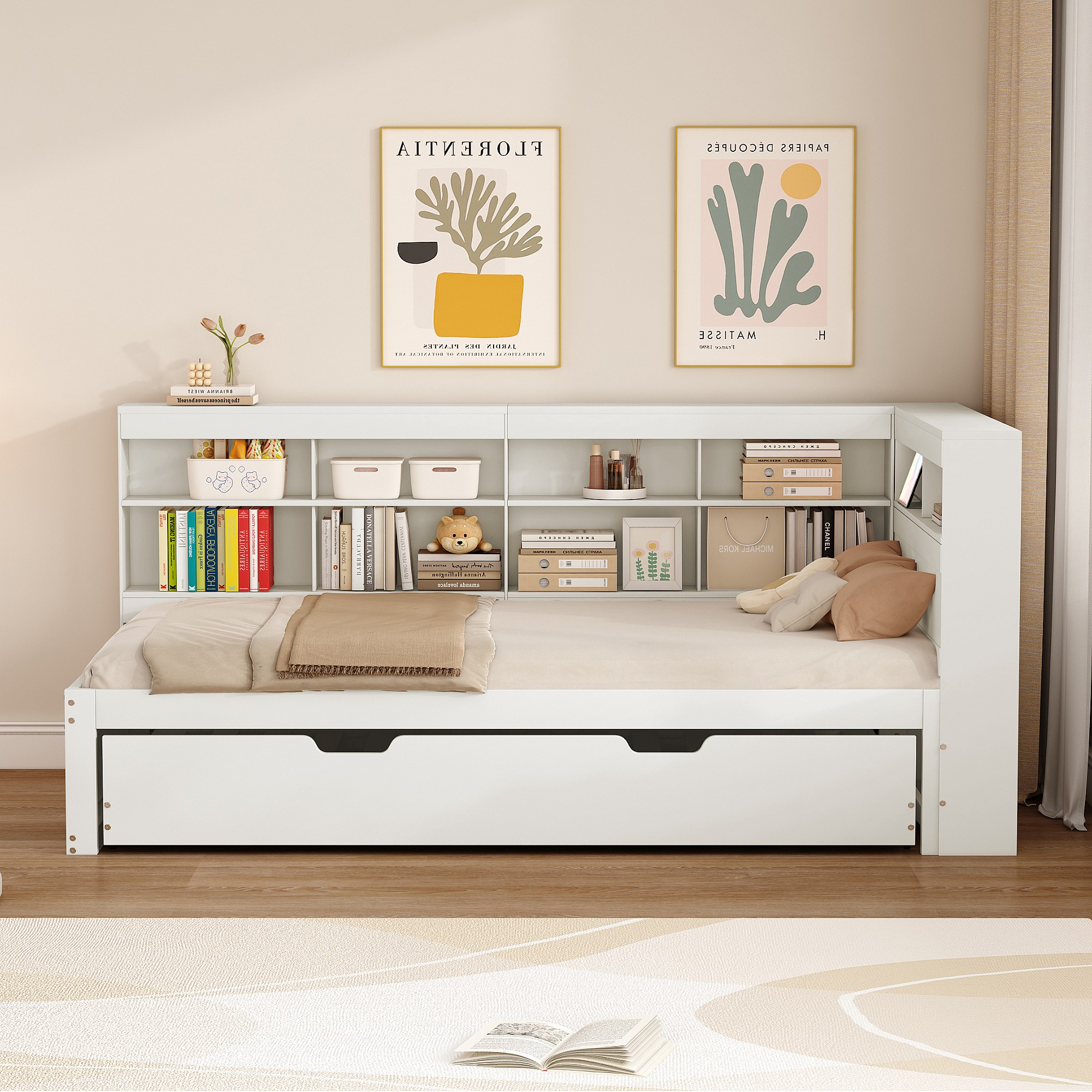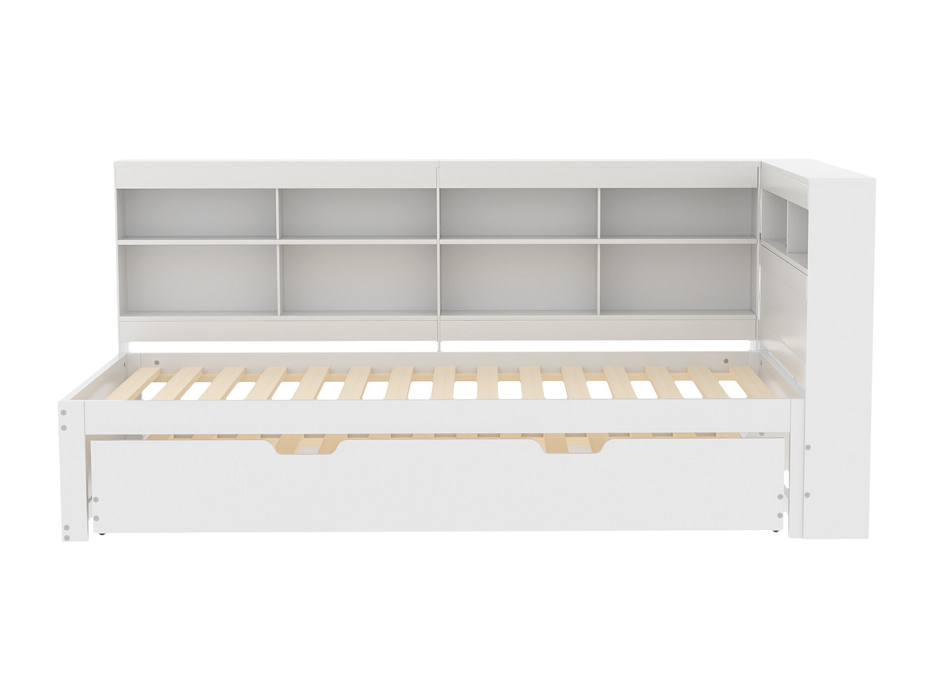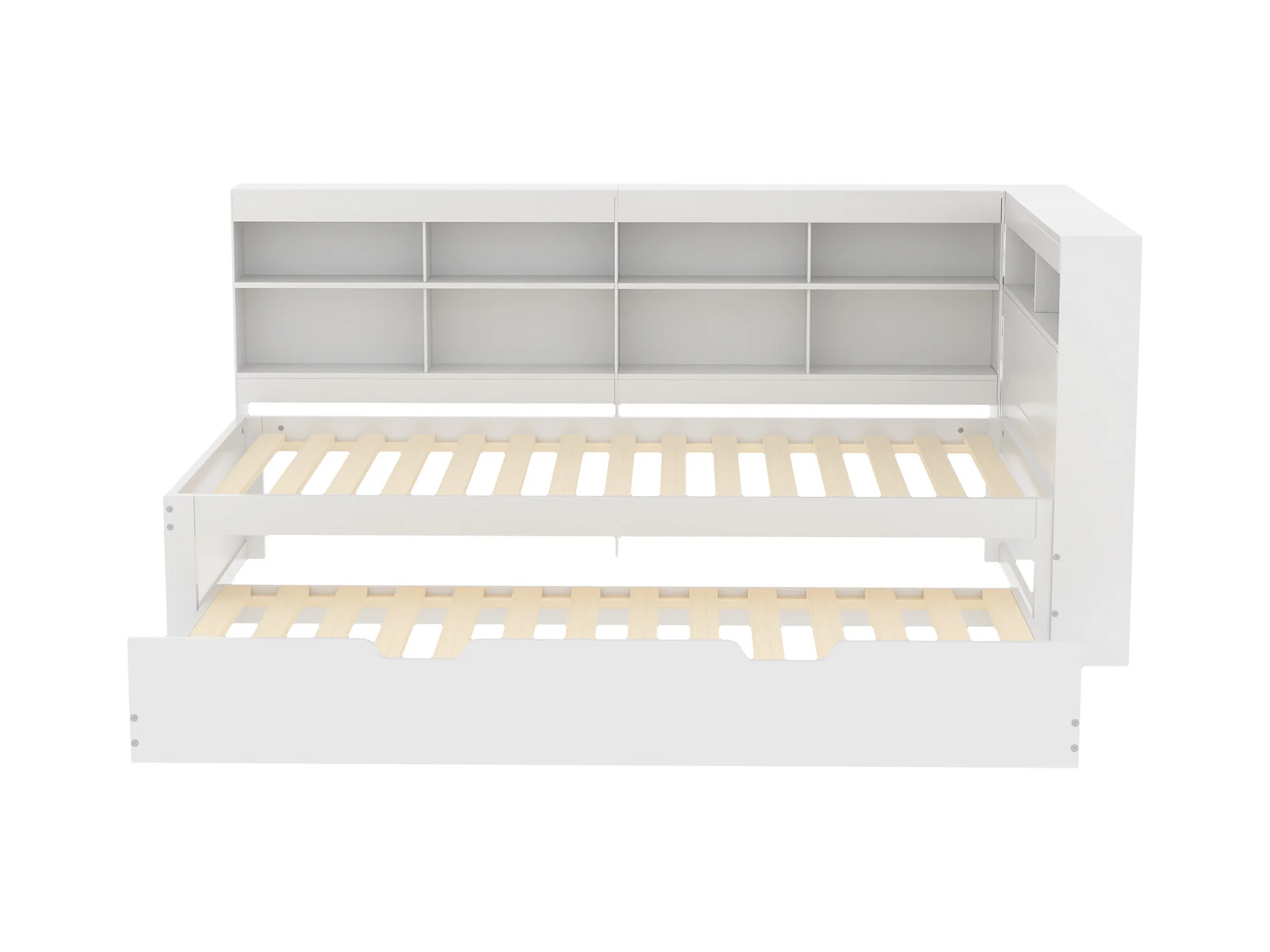 Lit banquette 90x200 cm avec lit gigogne et étagère de rangement, port USB - blanc - sans matelas