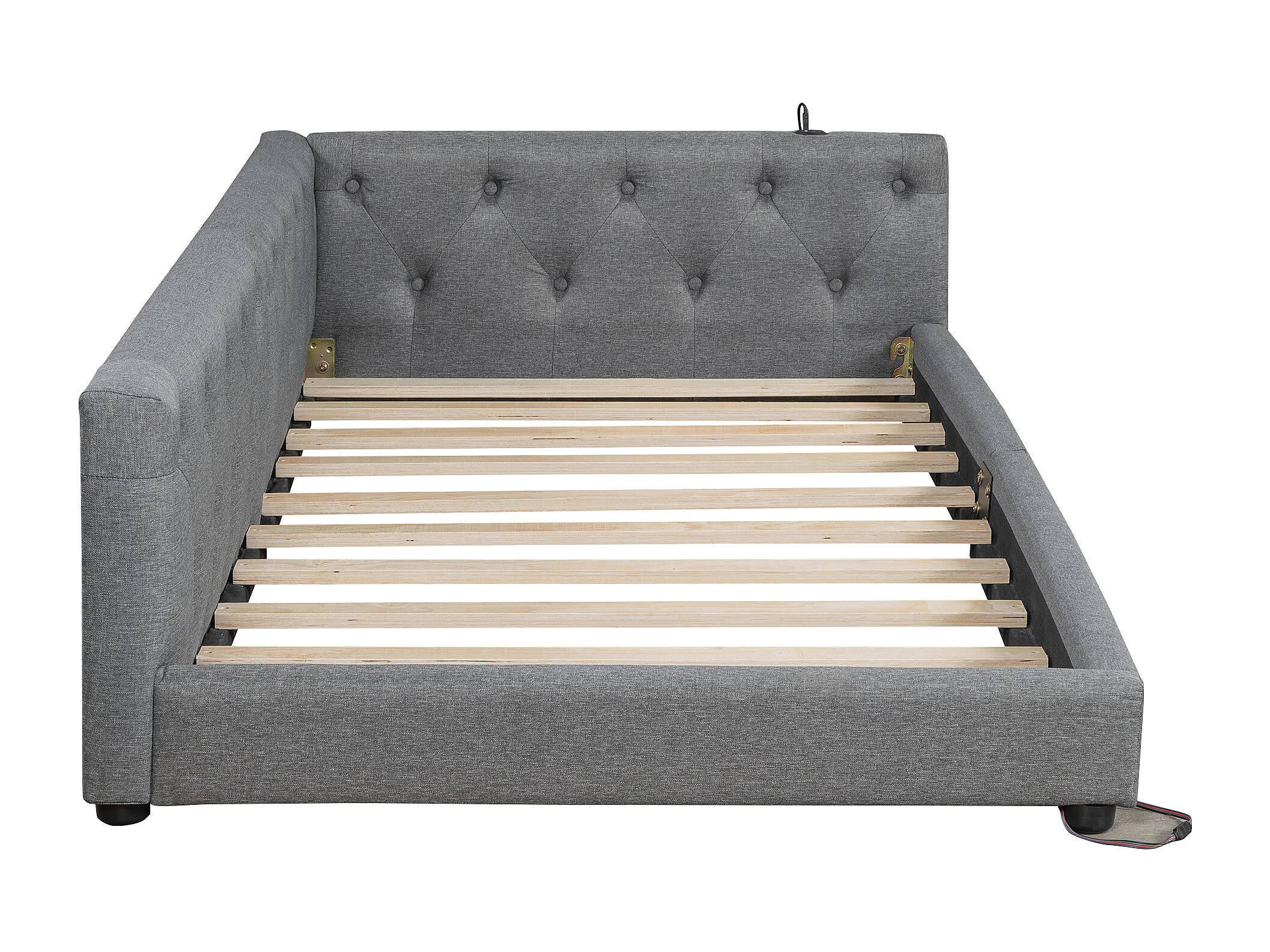 Lit banquette 90x200 cm en lin - avec LED et ports de recharge - Gris