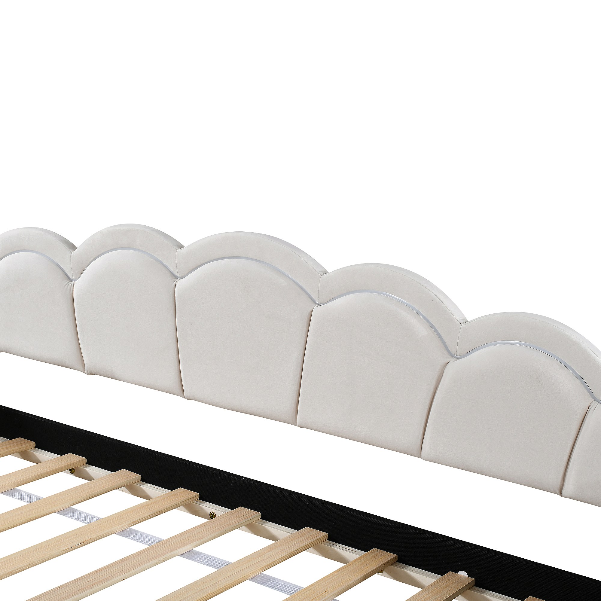 Lit banquette 90x200cm avec LED + lit gigogne 90x190cm - rembourré en tissu velours - Beige (matelas non inclus)