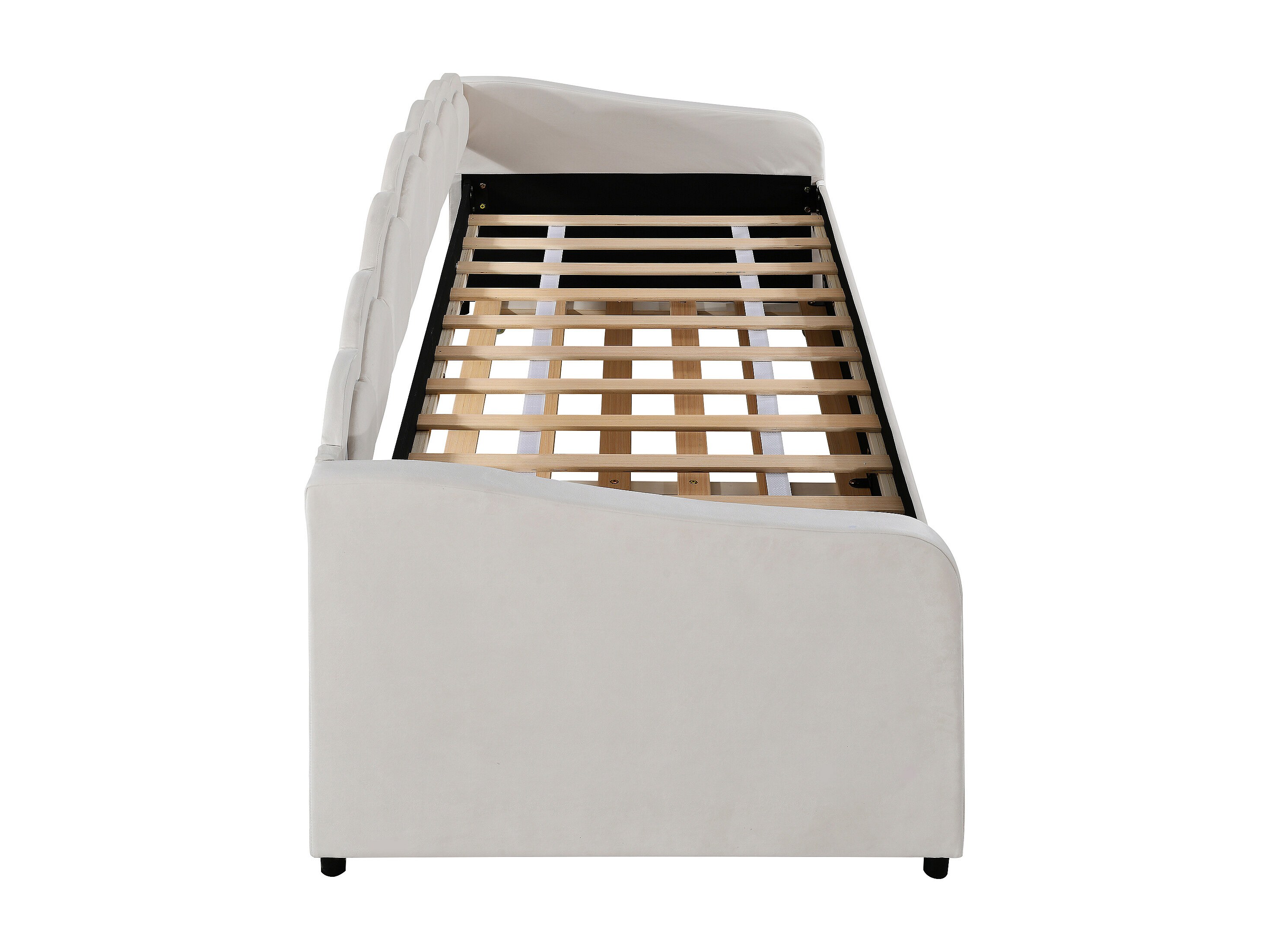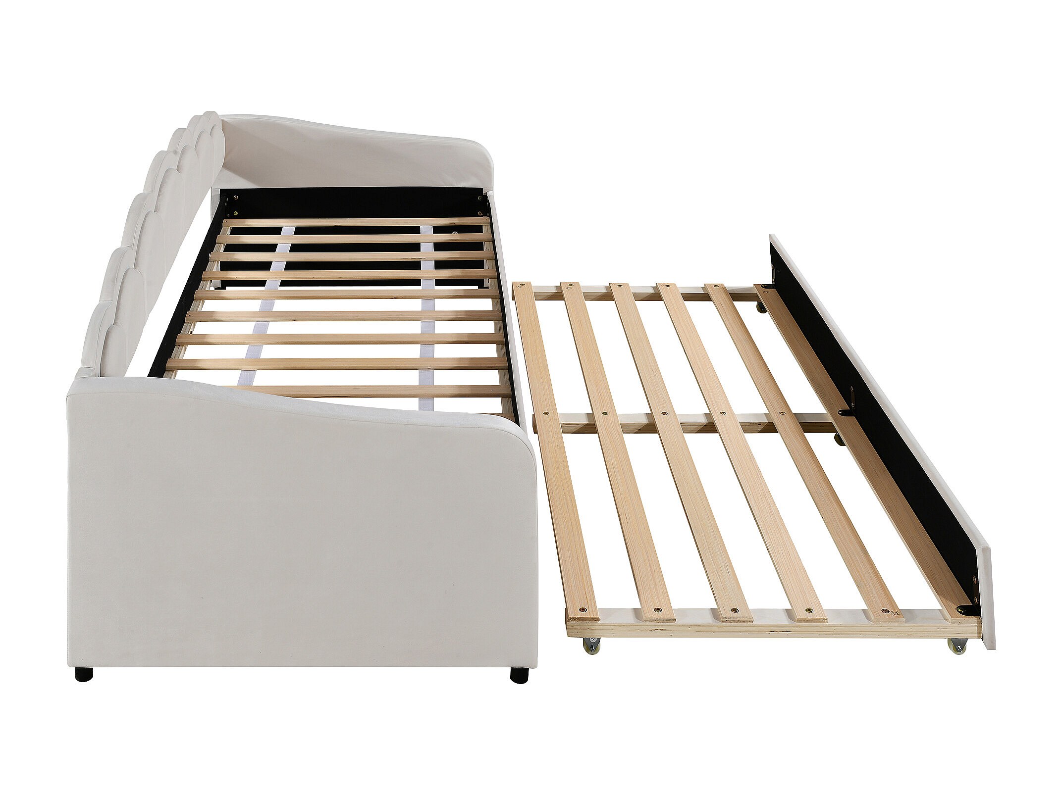 Lit simple en velours avec lit gigogne 90x200cm - Beige