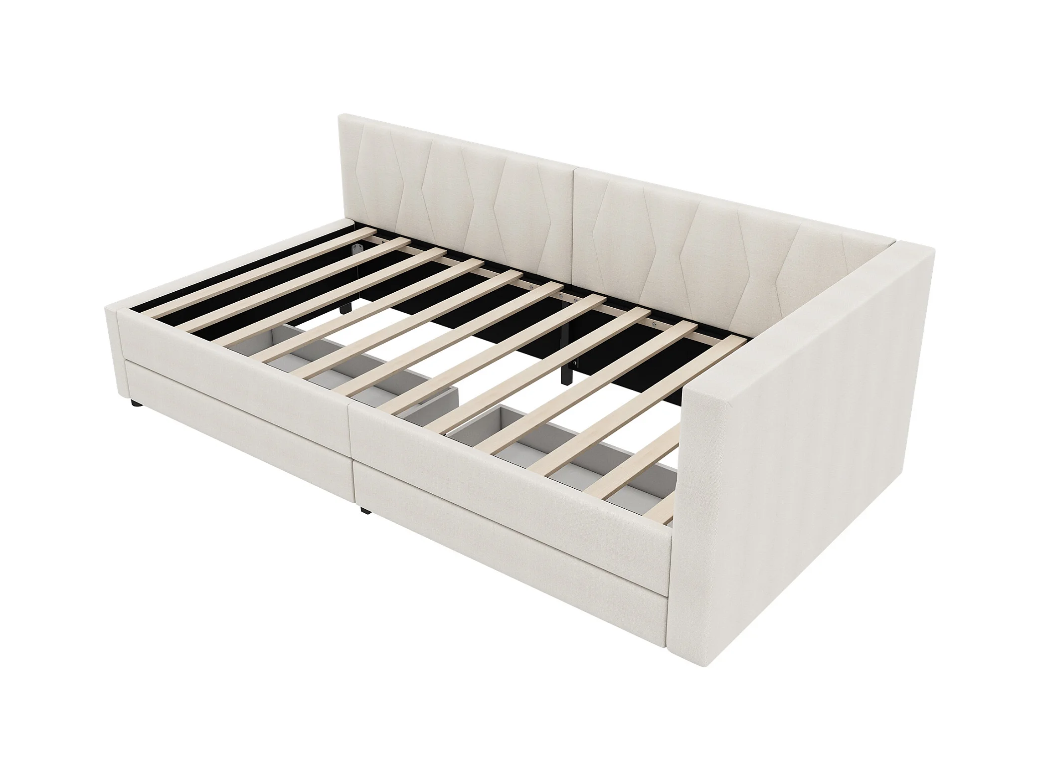 Lit banquette avec 2 tiroirs en tissu lin - 90x200cm - avec sommier à lattes - Beige