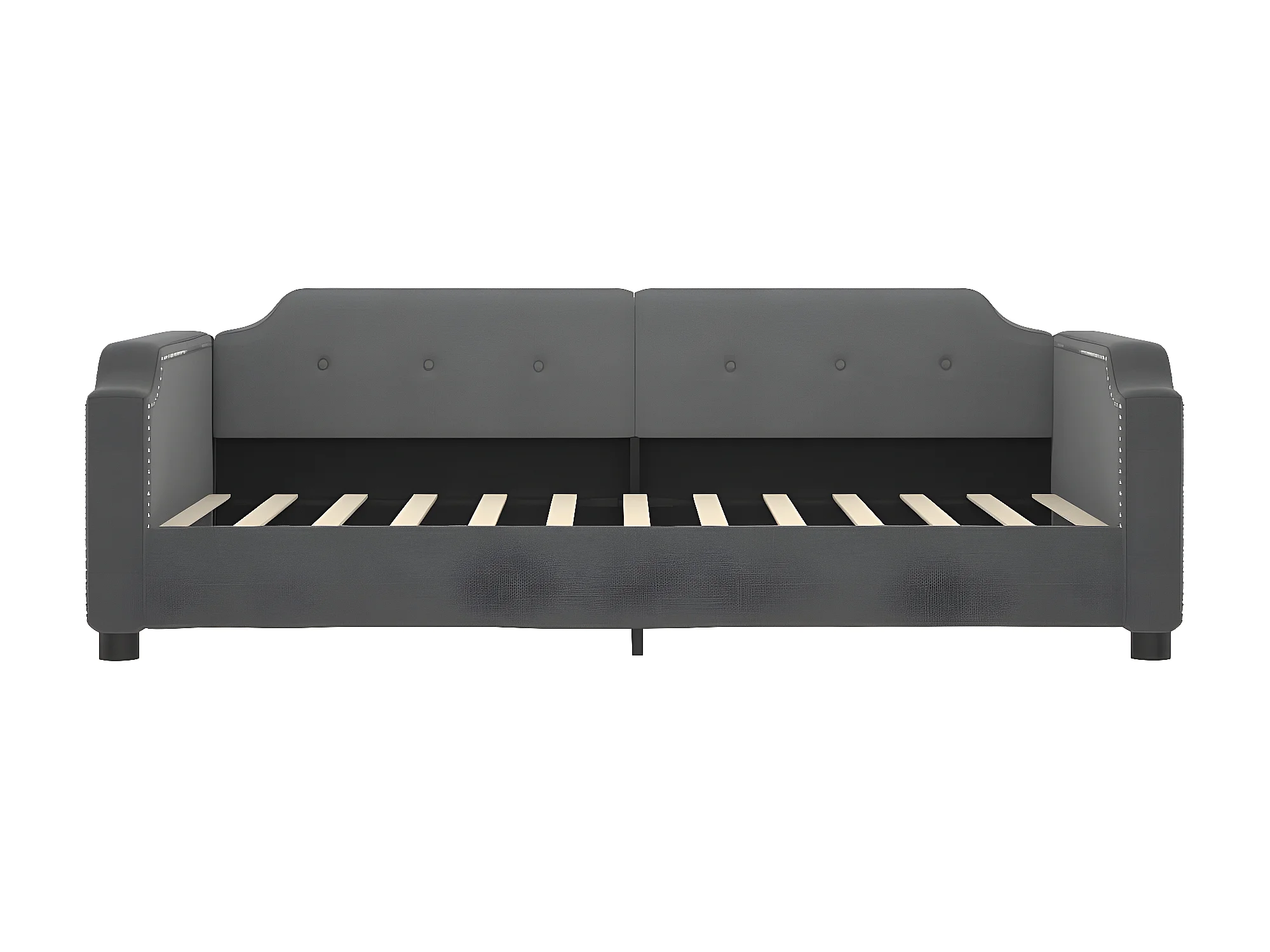 Lit - 90x200 cm avec matelas gris foncé tissu WVGQ4004