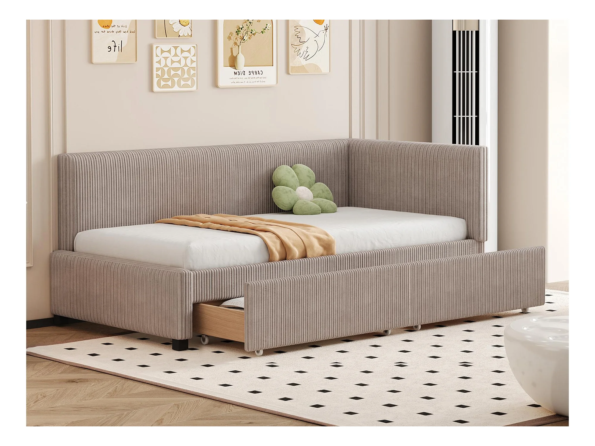 Lit banquette capitonné 90x200cm en velours - 2 tiroirs - avec sommier à lattes - Gris