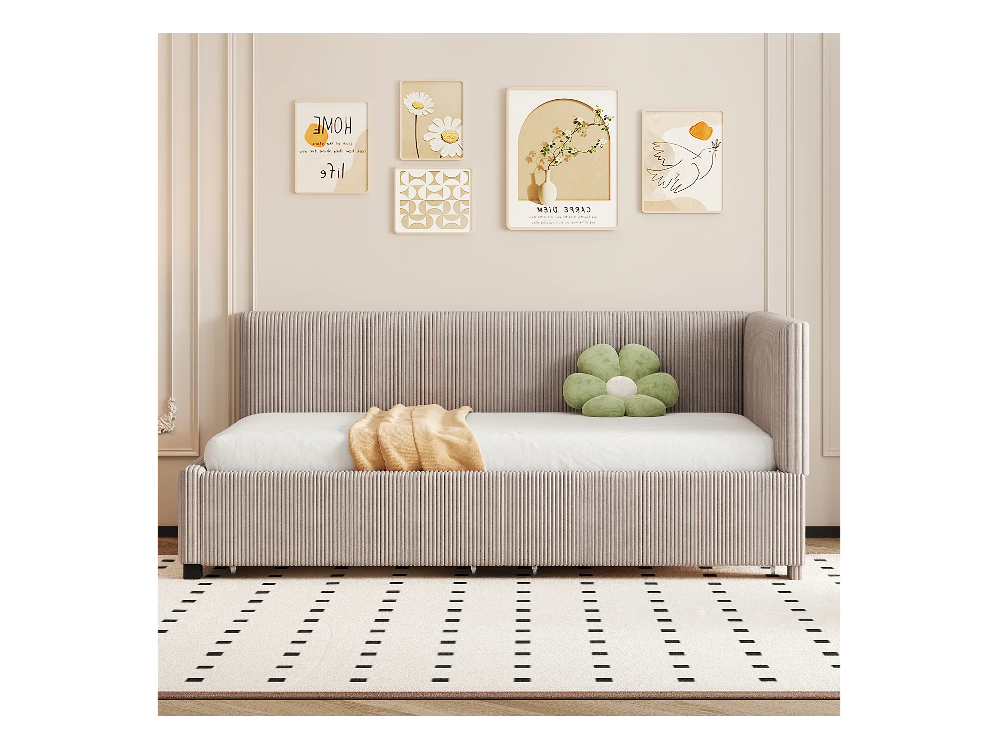 Lit banquette 90x200cm en velours - avec sommier à lattes - Gris clair (matelas non inclus)