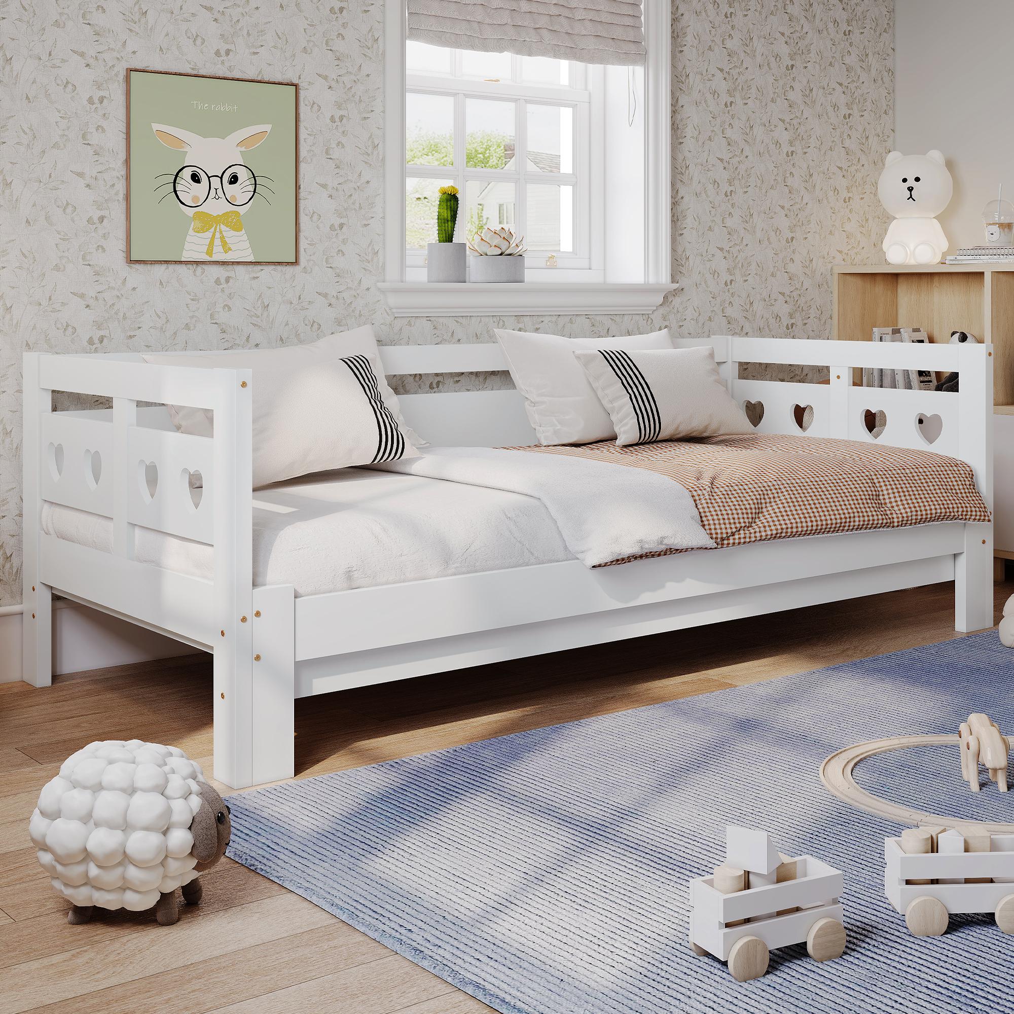 Lit banquette enfant 90x190 cm avec sommier - lit gigogne avec cadre de lit en bois - blanc (sans matelas)