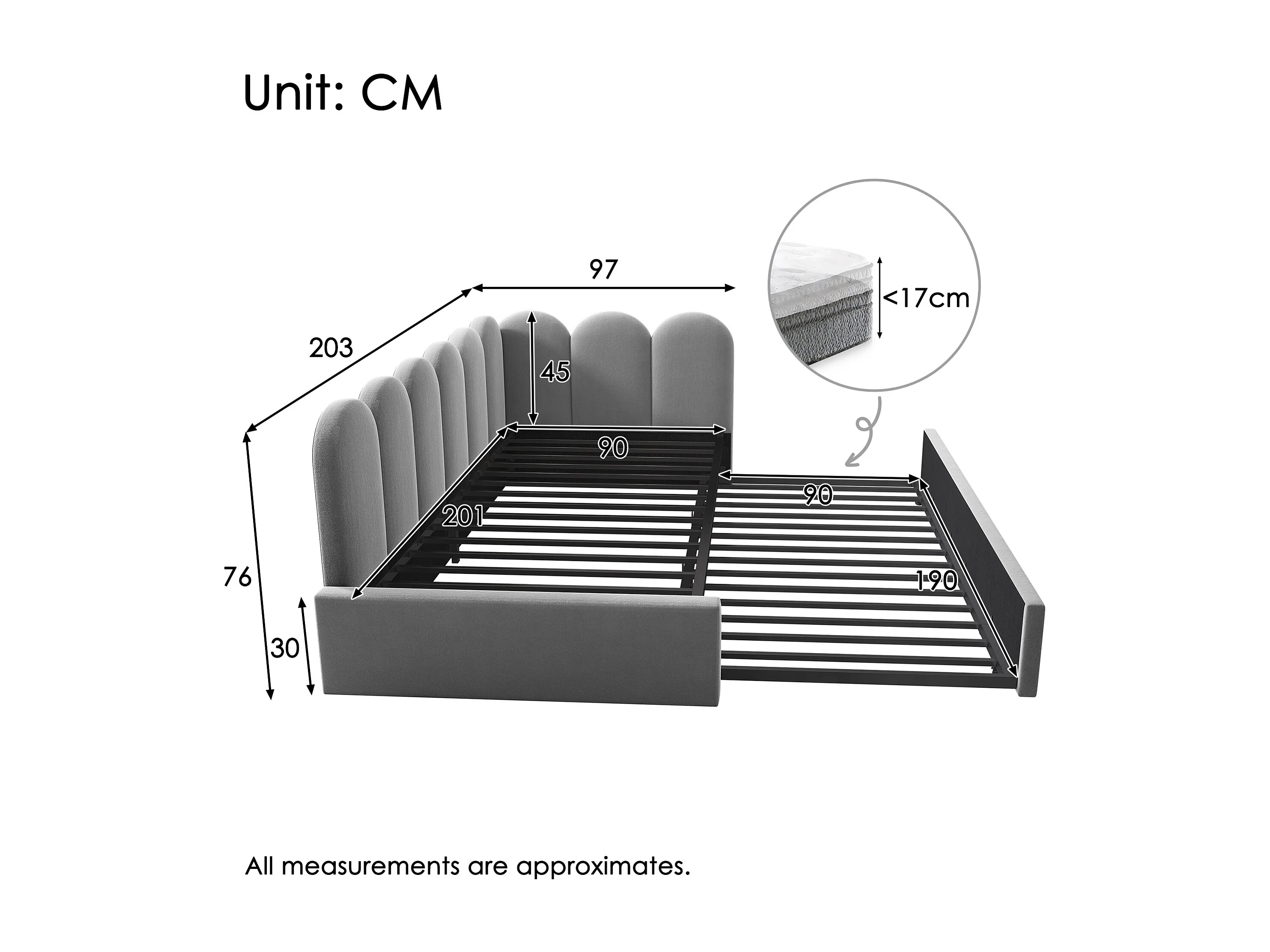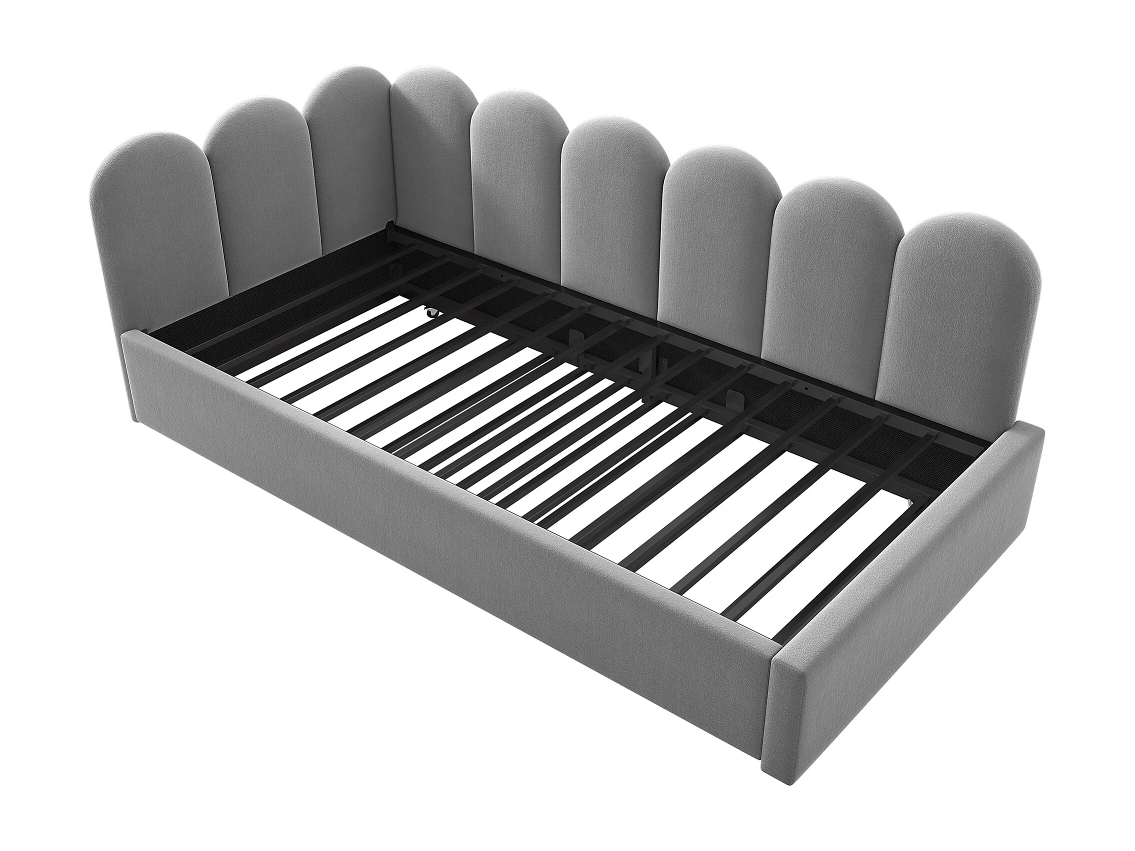 Lit gigogne 90x200 cm avec design grille, velours, gris (Sans matelas)