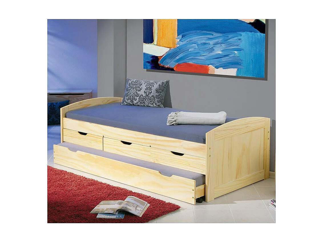 Lit Banquette Enfant Bois "Rob" 90x200cm Naturel