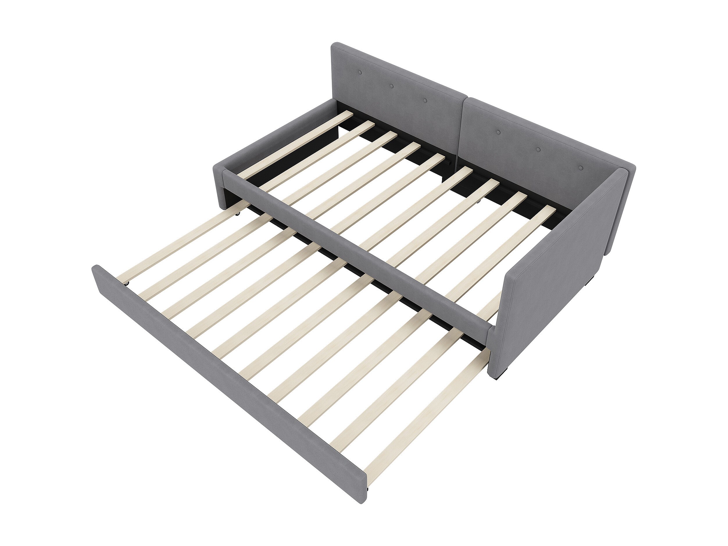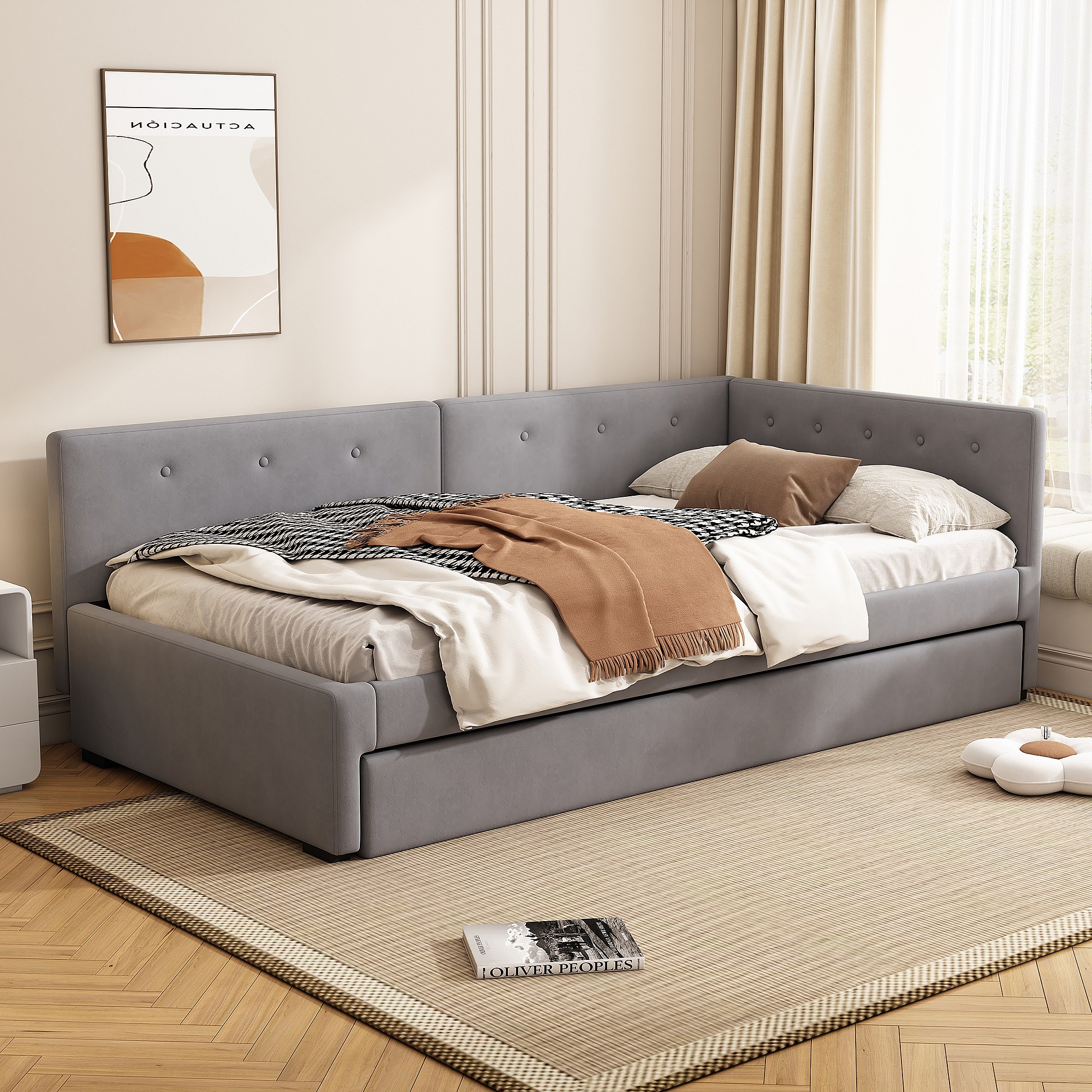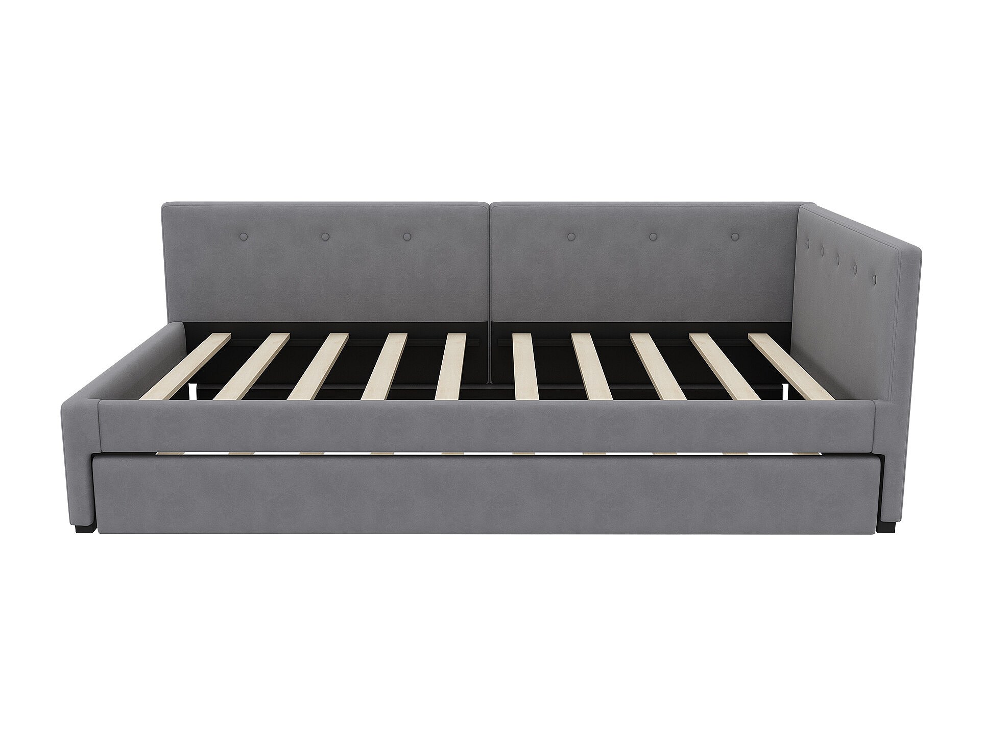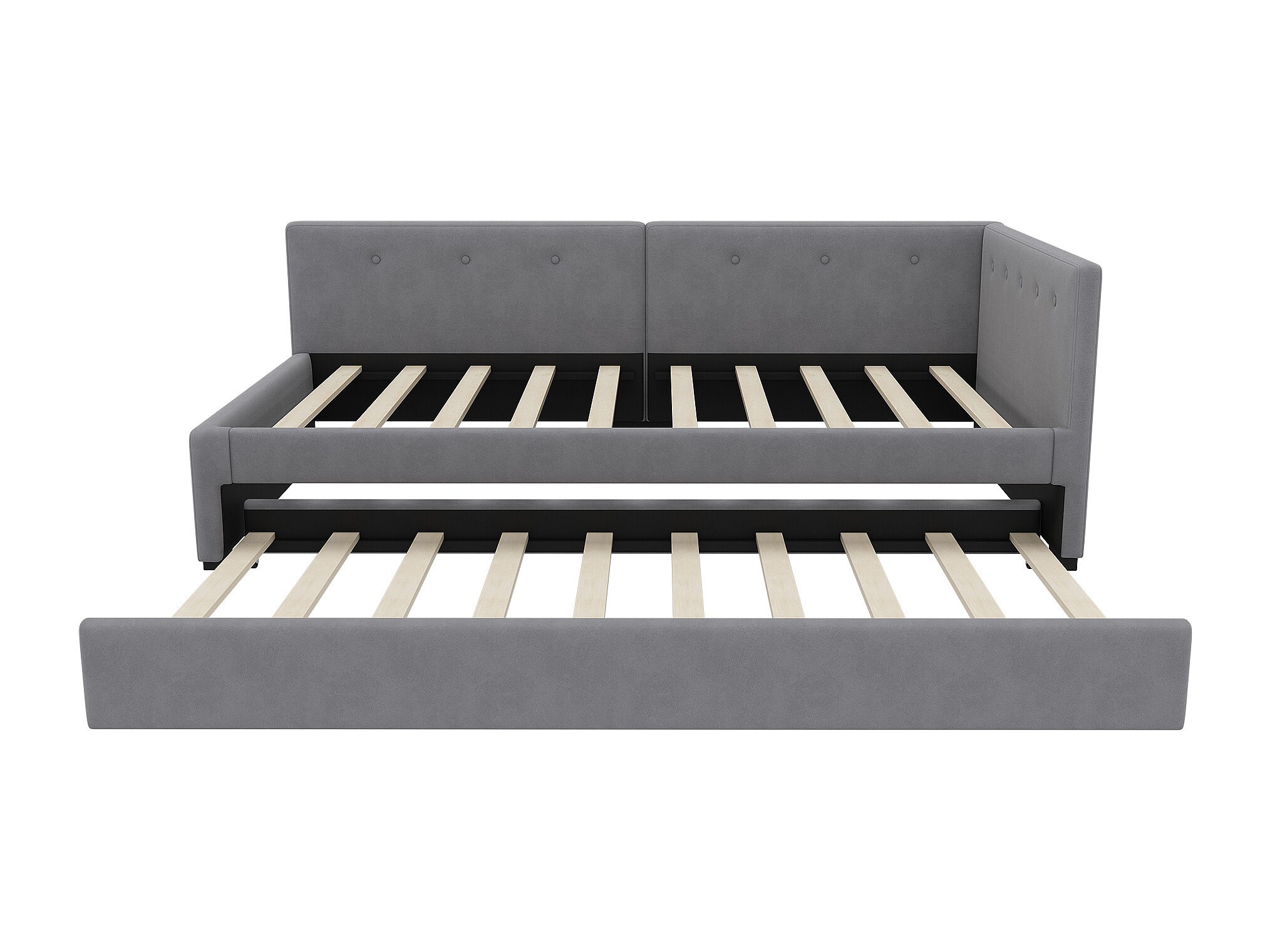 Lit banquette 90x200 cm avec lit gigogne et sommier à lattes, velours gris - sans matelas