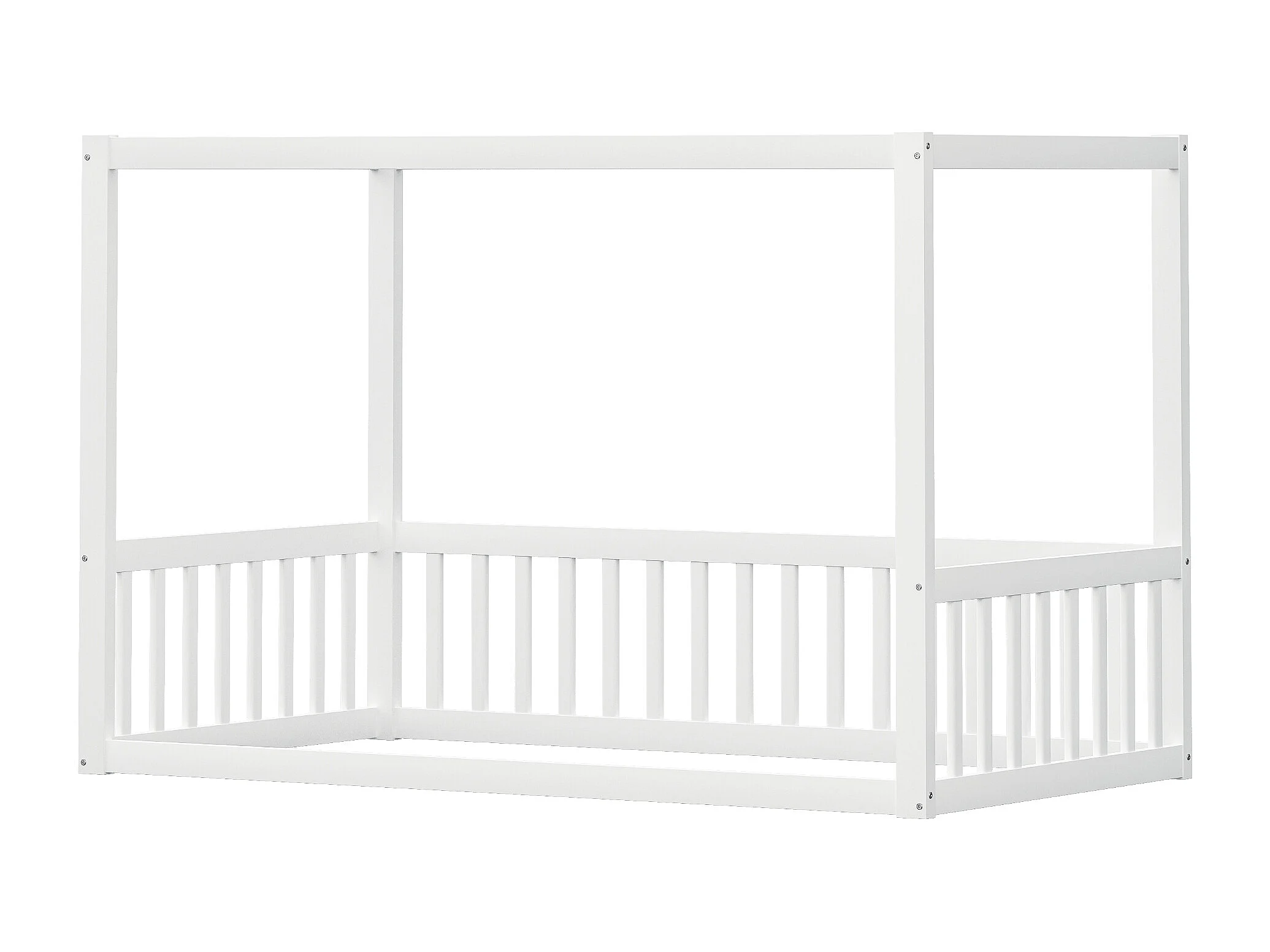 Lit bas pour enfants 90 x 200 cm, cadre en bois massif, lit à baldaquin, blanc (205x95x135 cm)