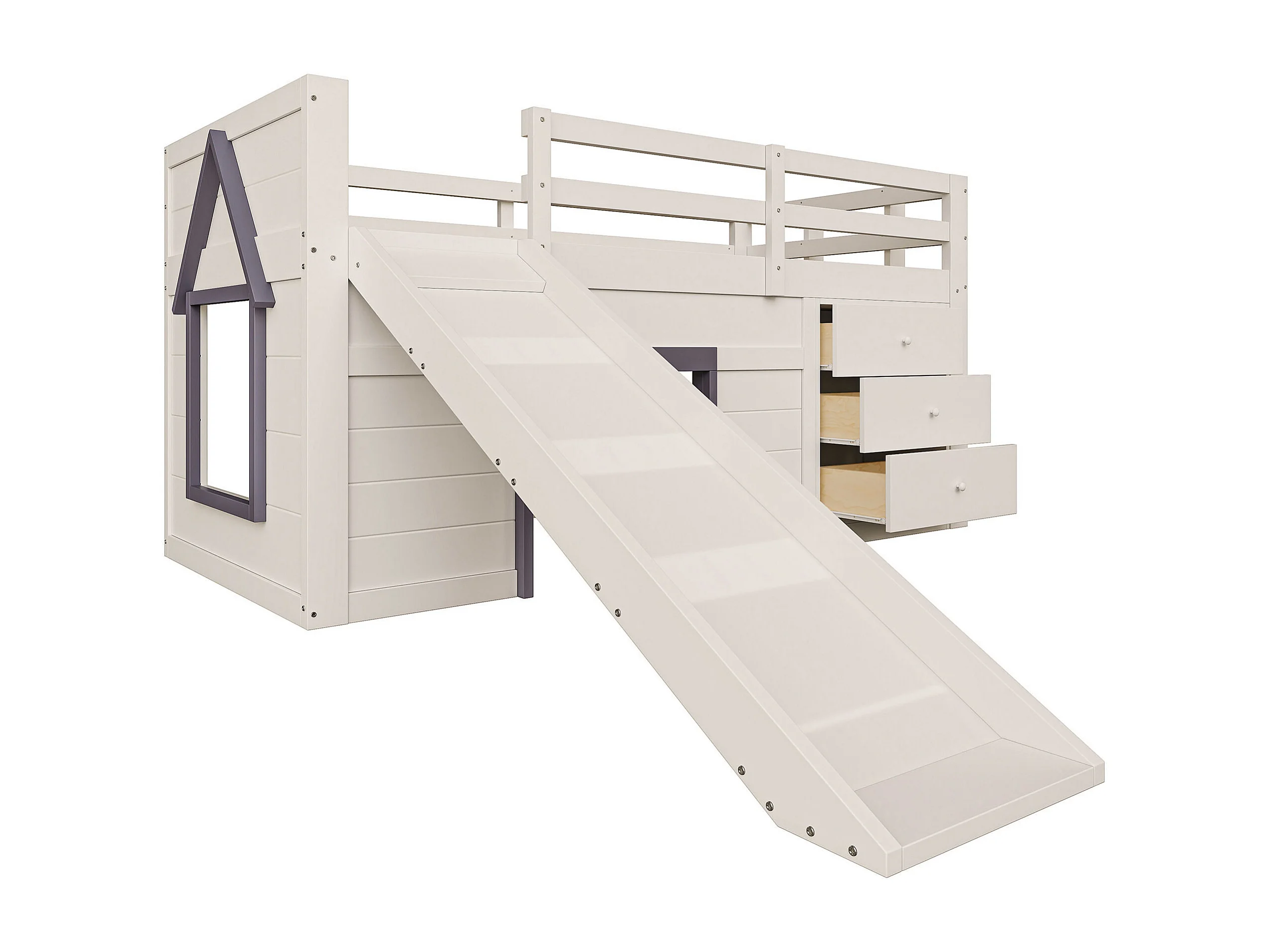 Lit bas type loft avec toboggan, 90x200, crème.