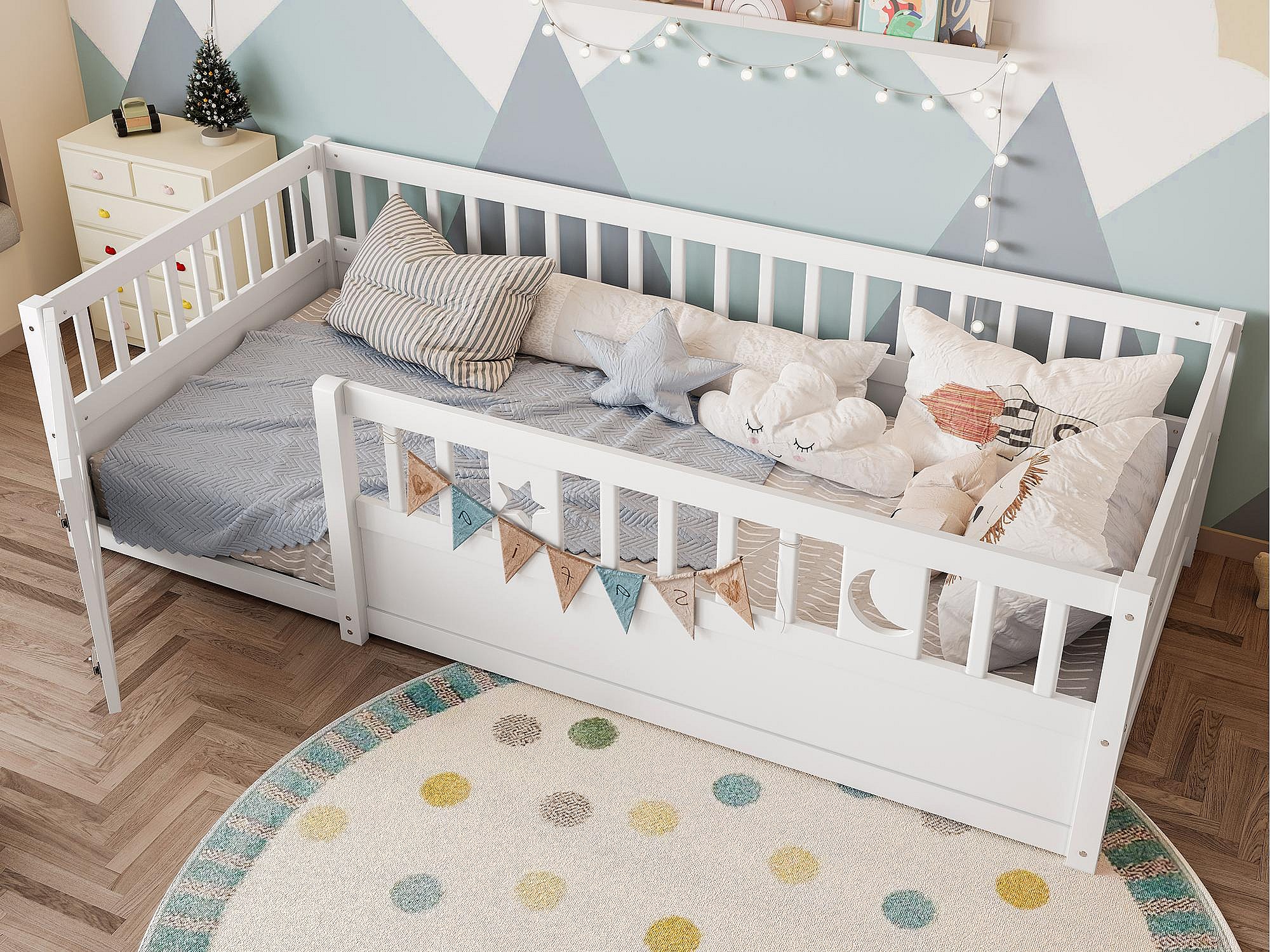 Lit bébé 90x190 cm - avec barrières de sécurité - sans sommier à lattes - blanc (sans matelas)
