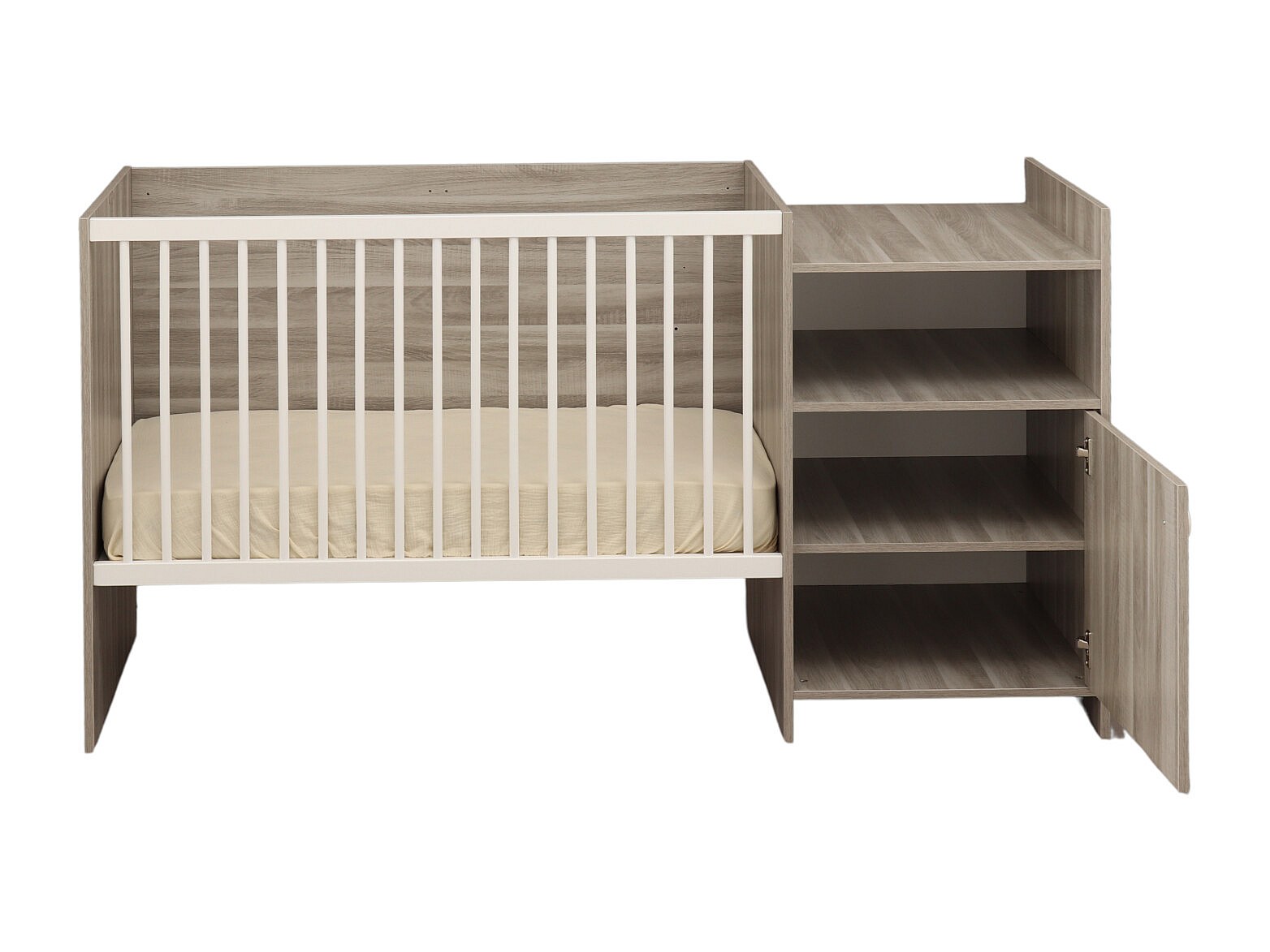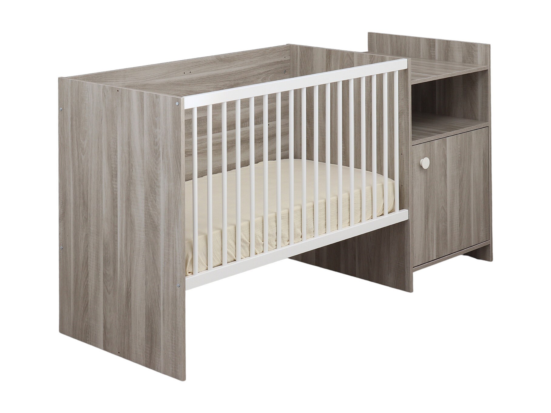 Lit bébé combiné 120x60 évolutif en 90x190 en décor bois avec commode à langer 1 porte UP - BabyPrice