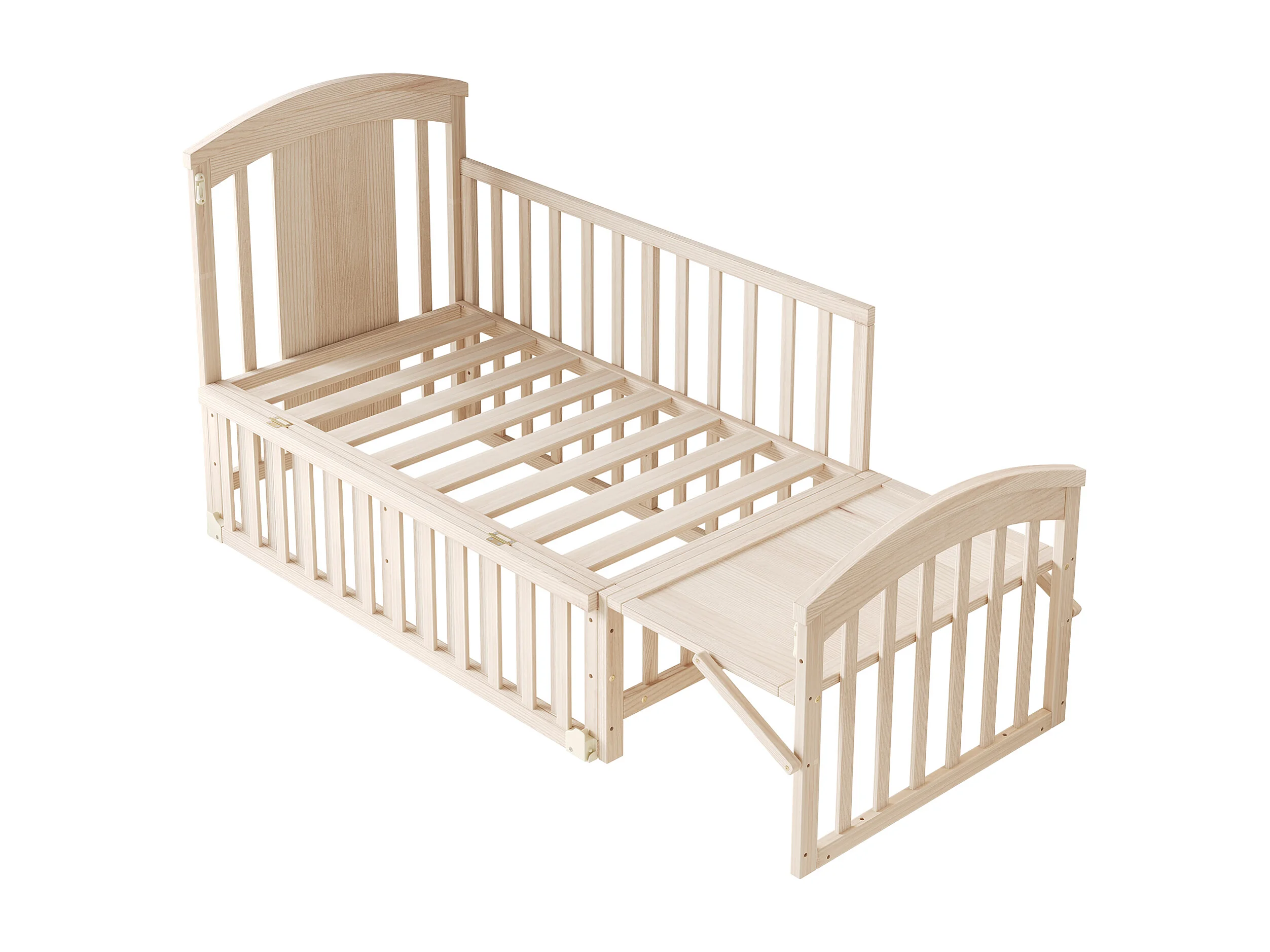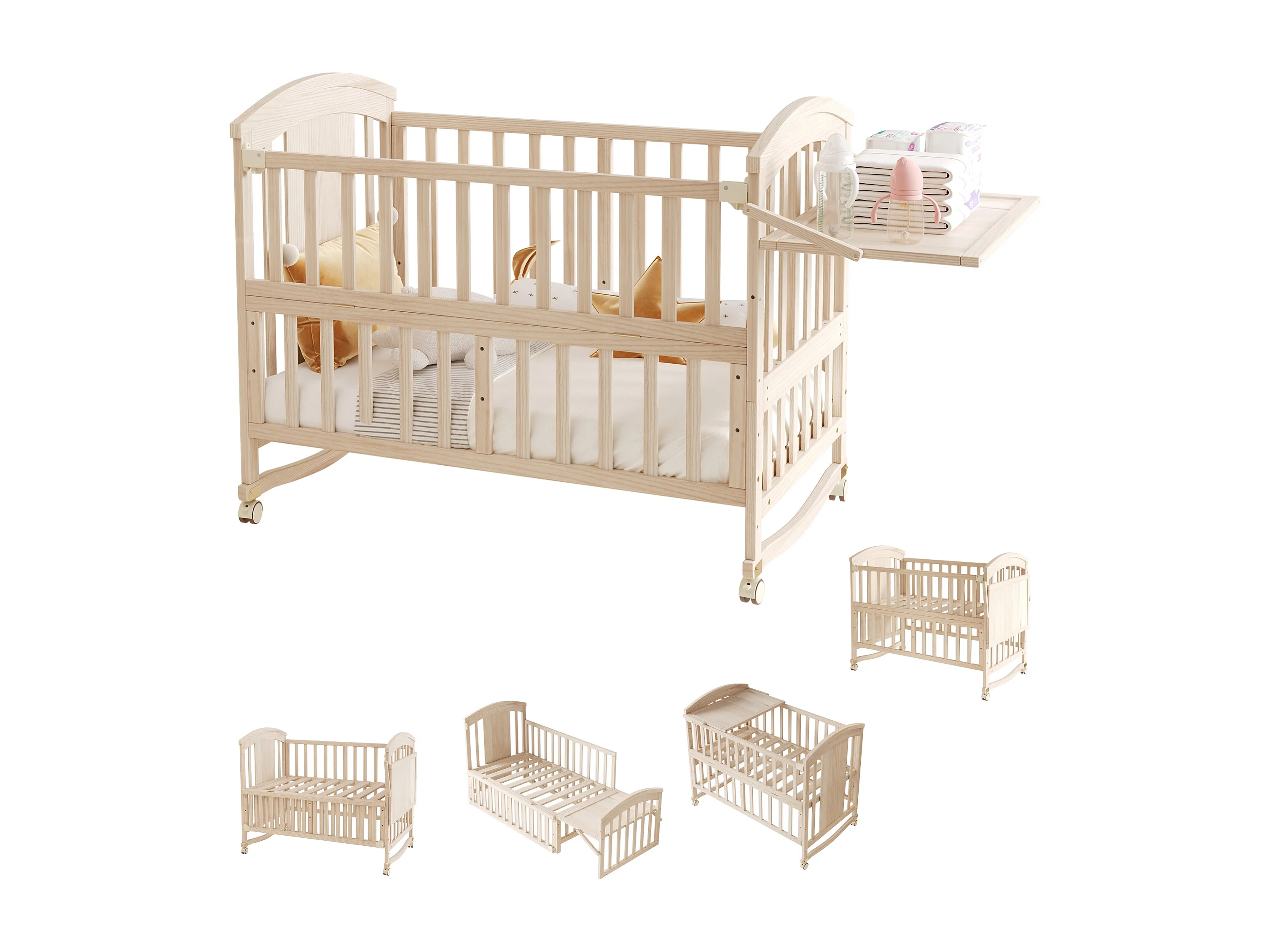Lit bébé en bois 120x60x95 cm - extensible et mobile - avec table à langer/ étagère de rangement pliable - Naturel (matelas non inclus)
