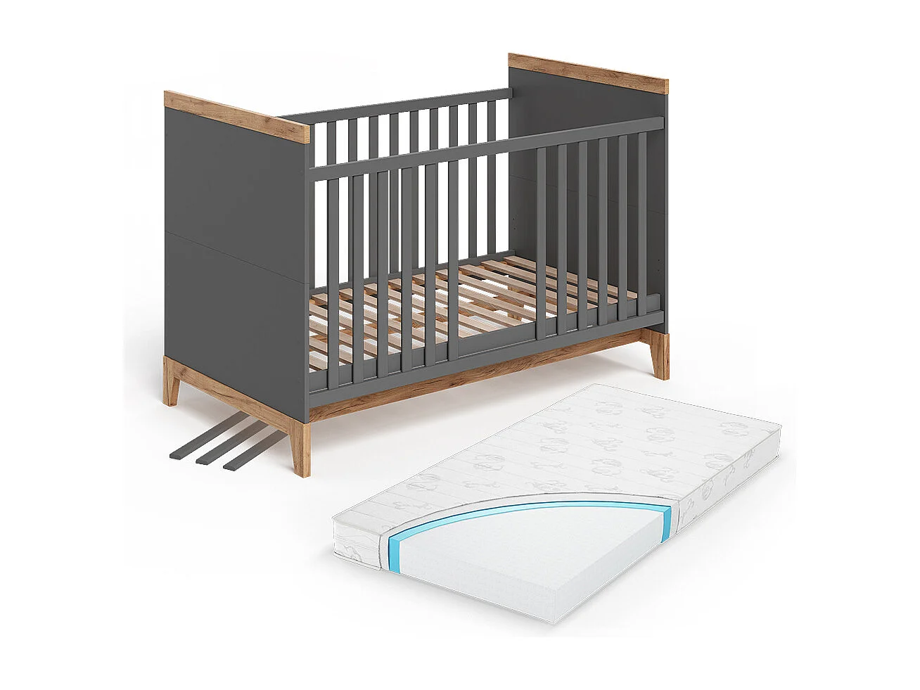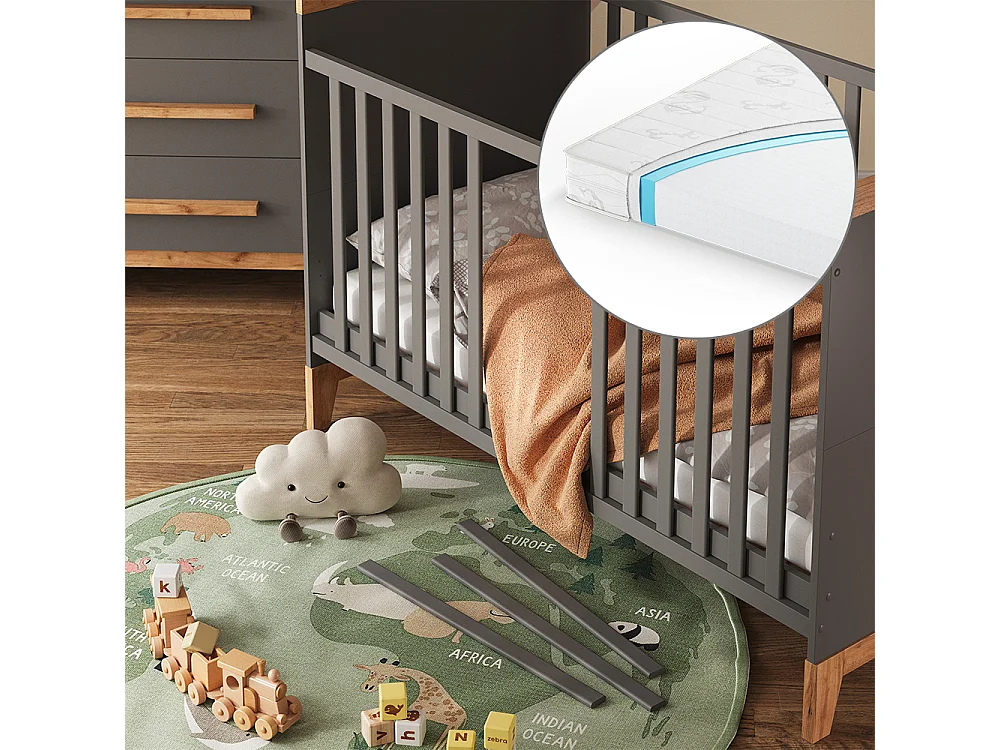 Lit bébé gris/artisan 144.1x79.7x98.4 malia