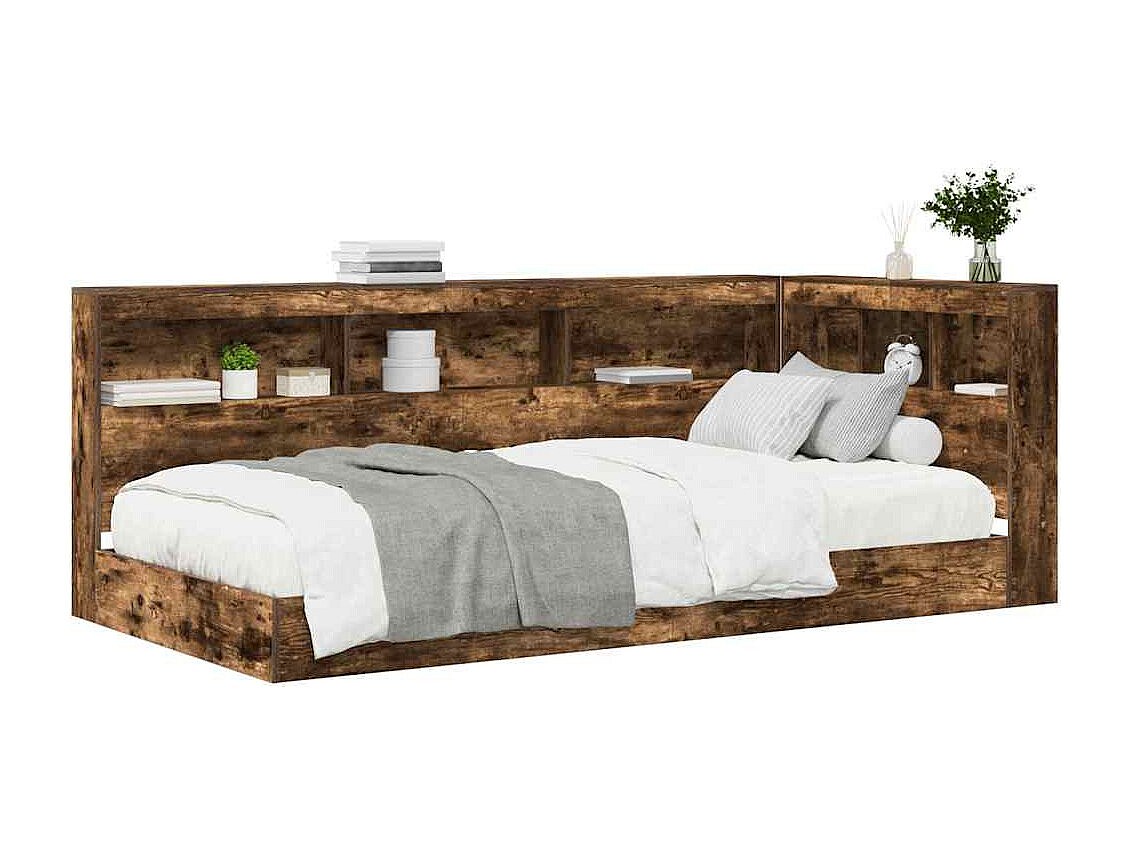 Cadre de lit avec rangement Bois Ancien 75 x 190 cm Bois d'ingénierie