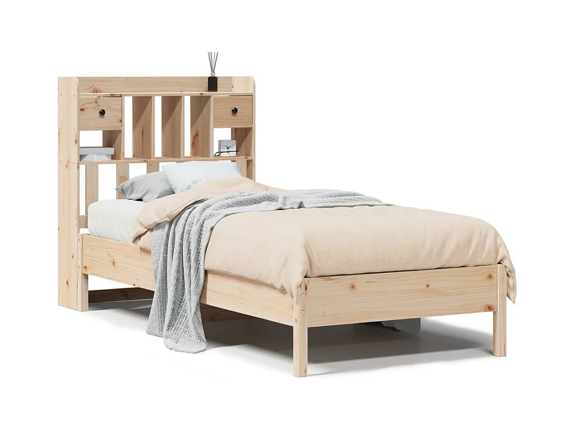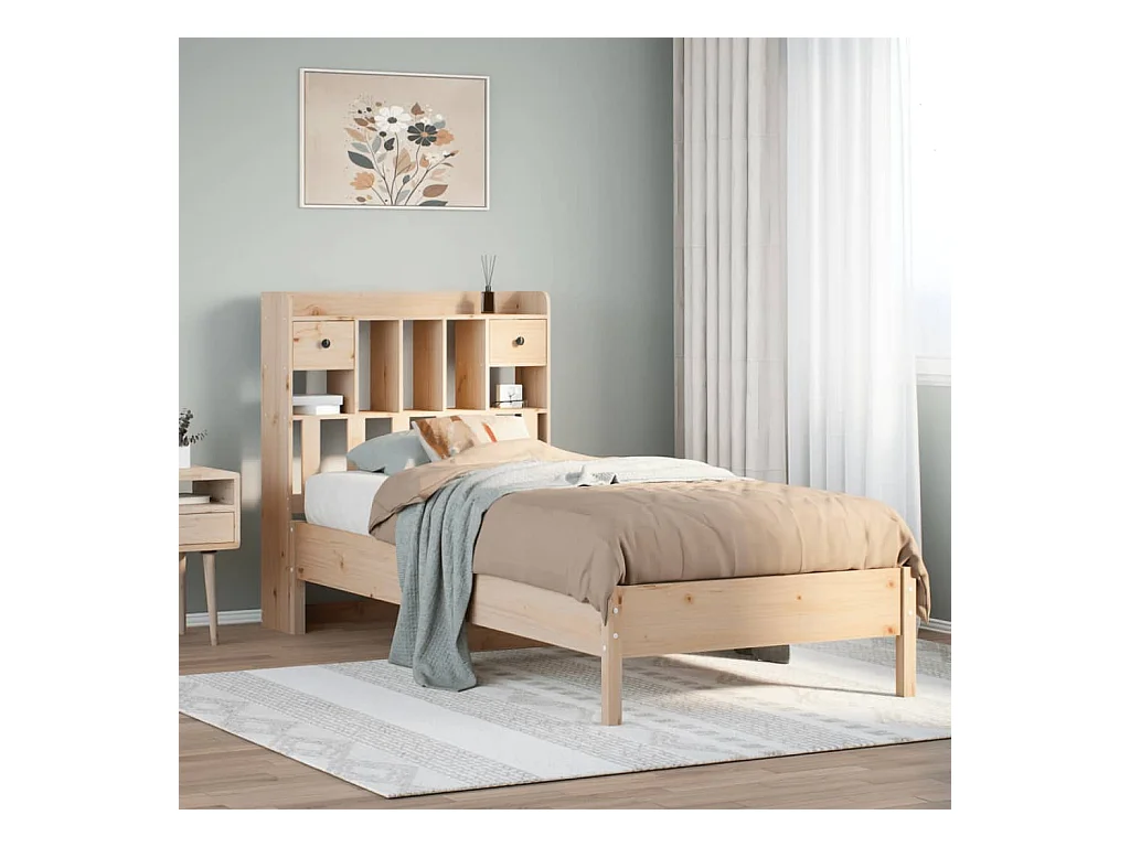 Lit bibliothèque sans matelas 100x200 cm bois massif de pin