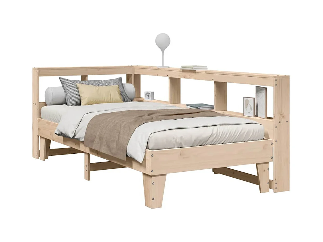 Lit bibliothèque sans matelas 100x200 cm bois massif de pin