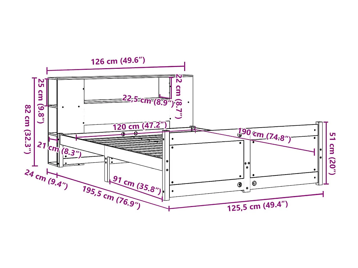 Lit bibliothèque sans matelas 120x190 cm bois de pin massif