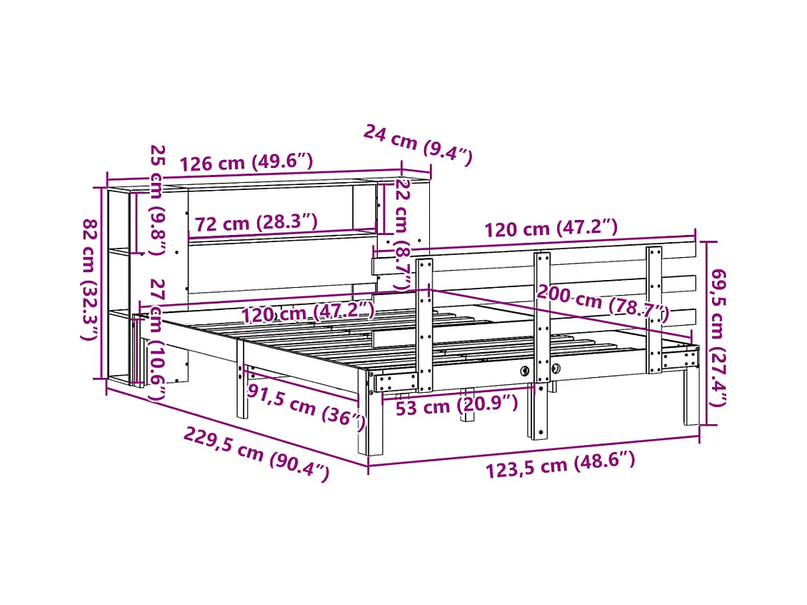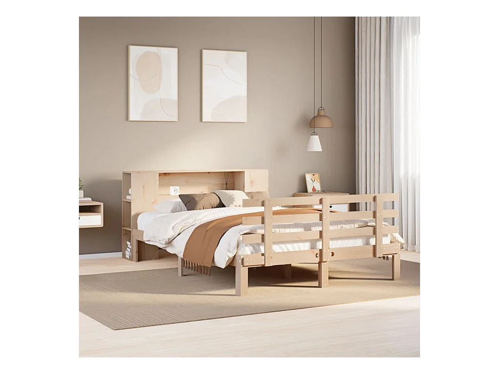 Lit bibliothèque sans matelas 120x200 cm bois de pin massif
