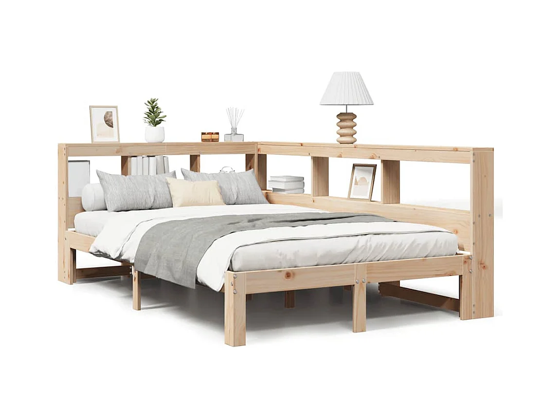 Lit bibliothèque sans matelas 135x190 cm bois de pin massif
