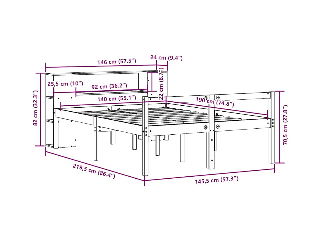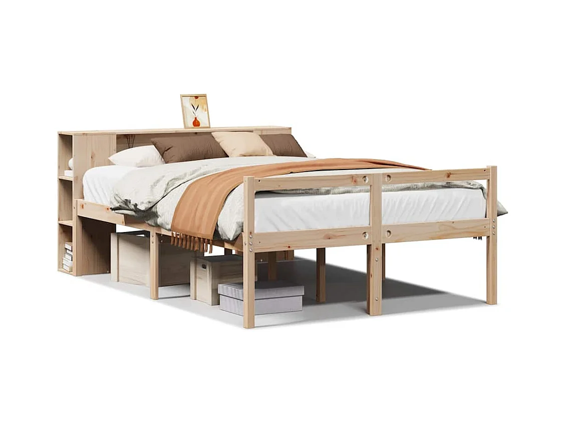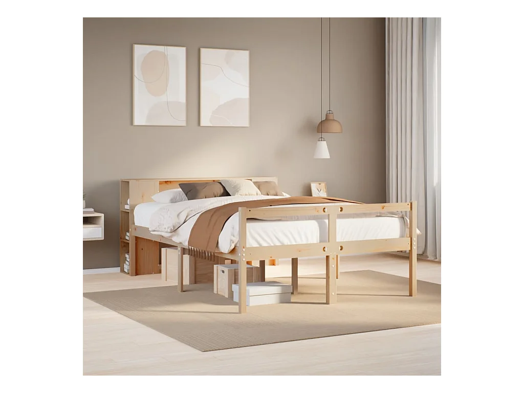 Lit bibliothèque sans matelas 140x190 cm bois de pin massif