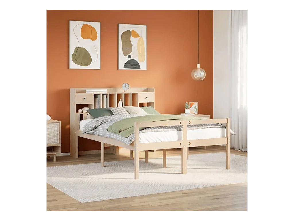 Lit bibliothèque sans matelas 140x190 cm bois de pin massif