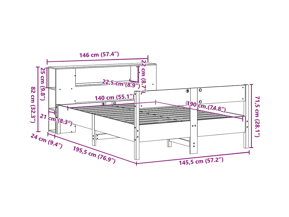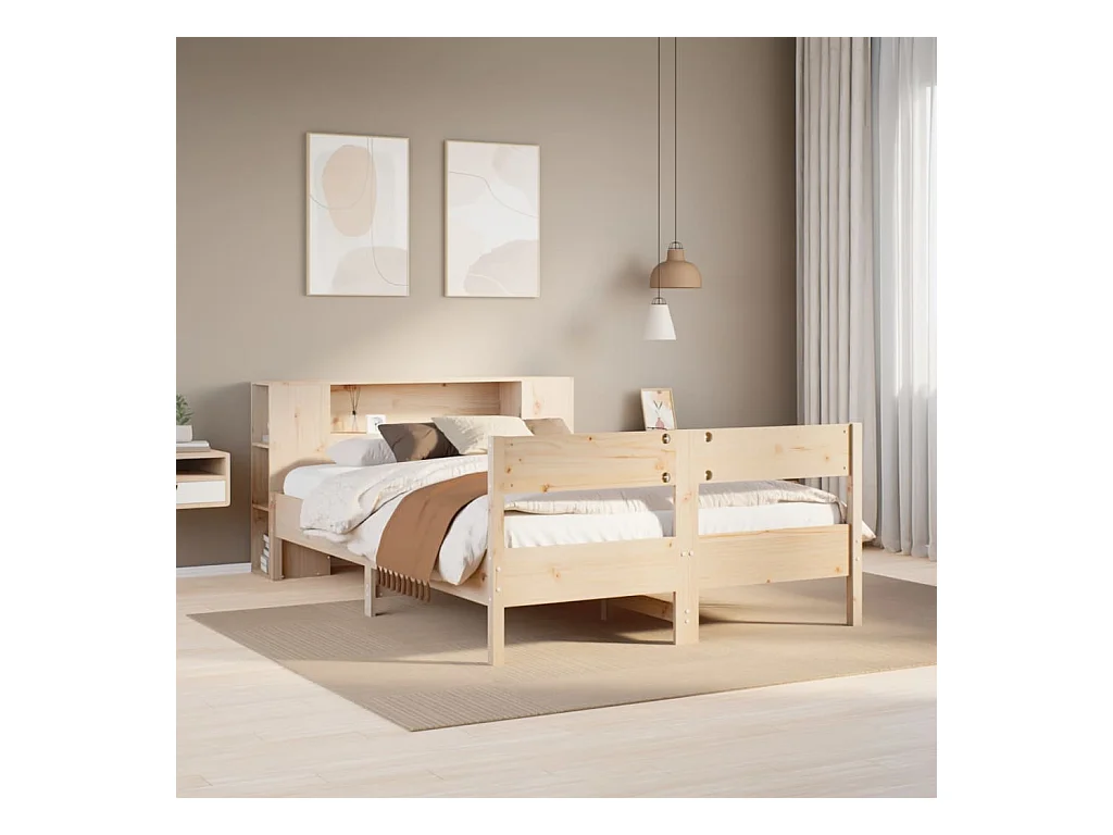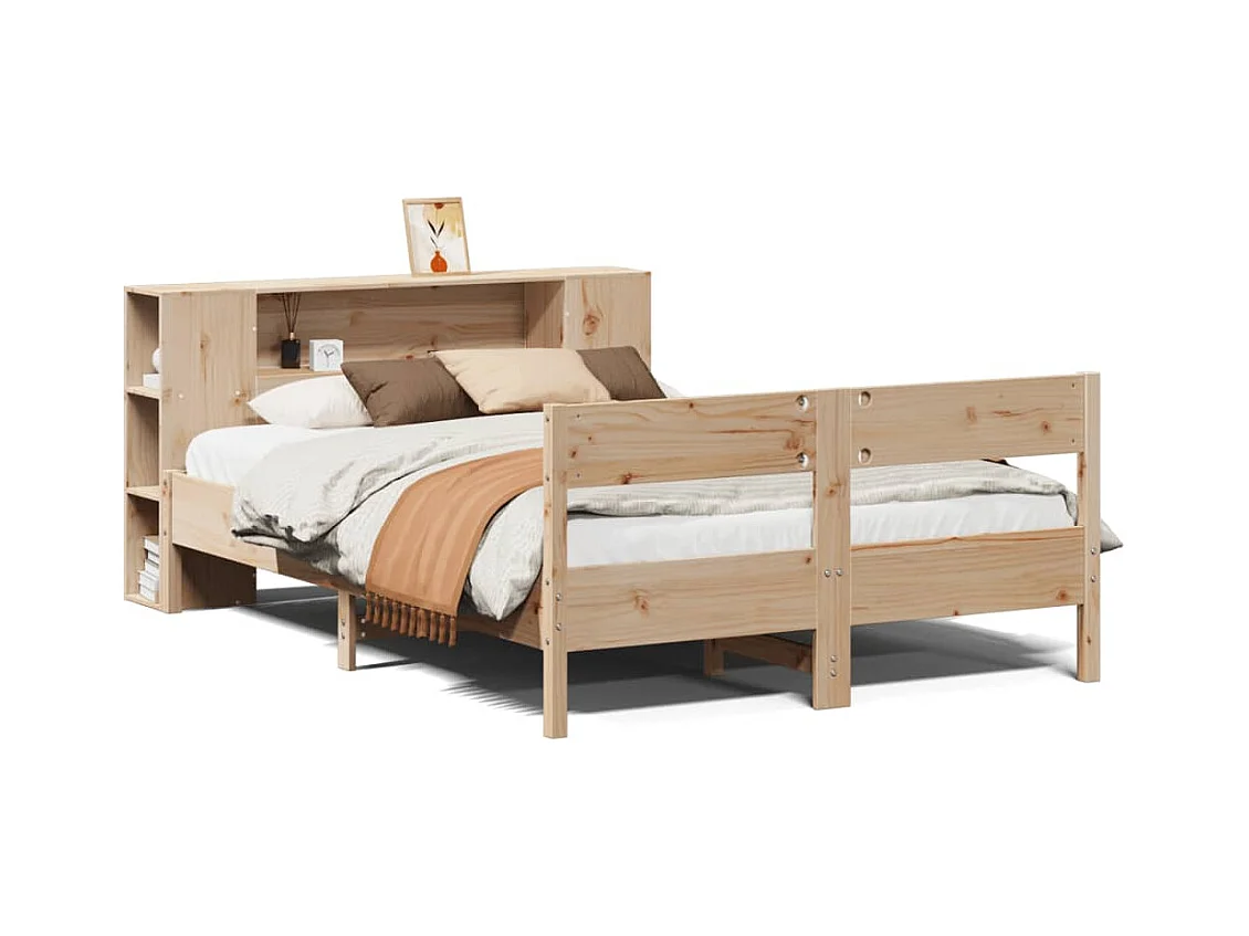 Lit bibliothèque sans matelas 140x190 cm bois de pin massif