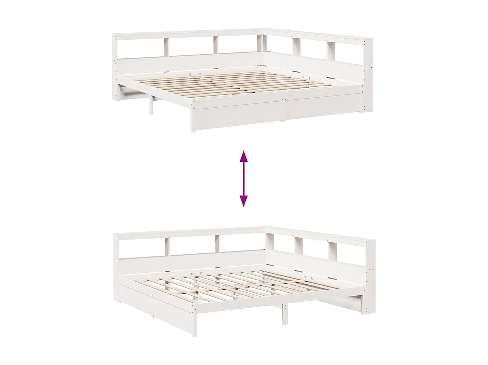 Lit bibliothèque sans matelas 160x200 cm bois massif de pin