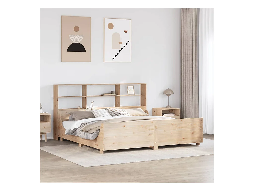 Lit bibliothèque sans matelas 180x200 cm bois massif