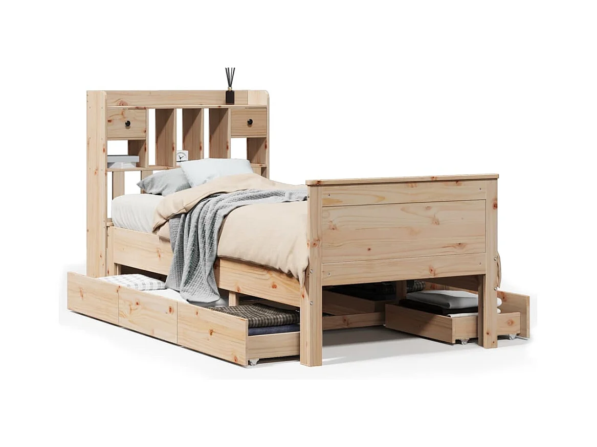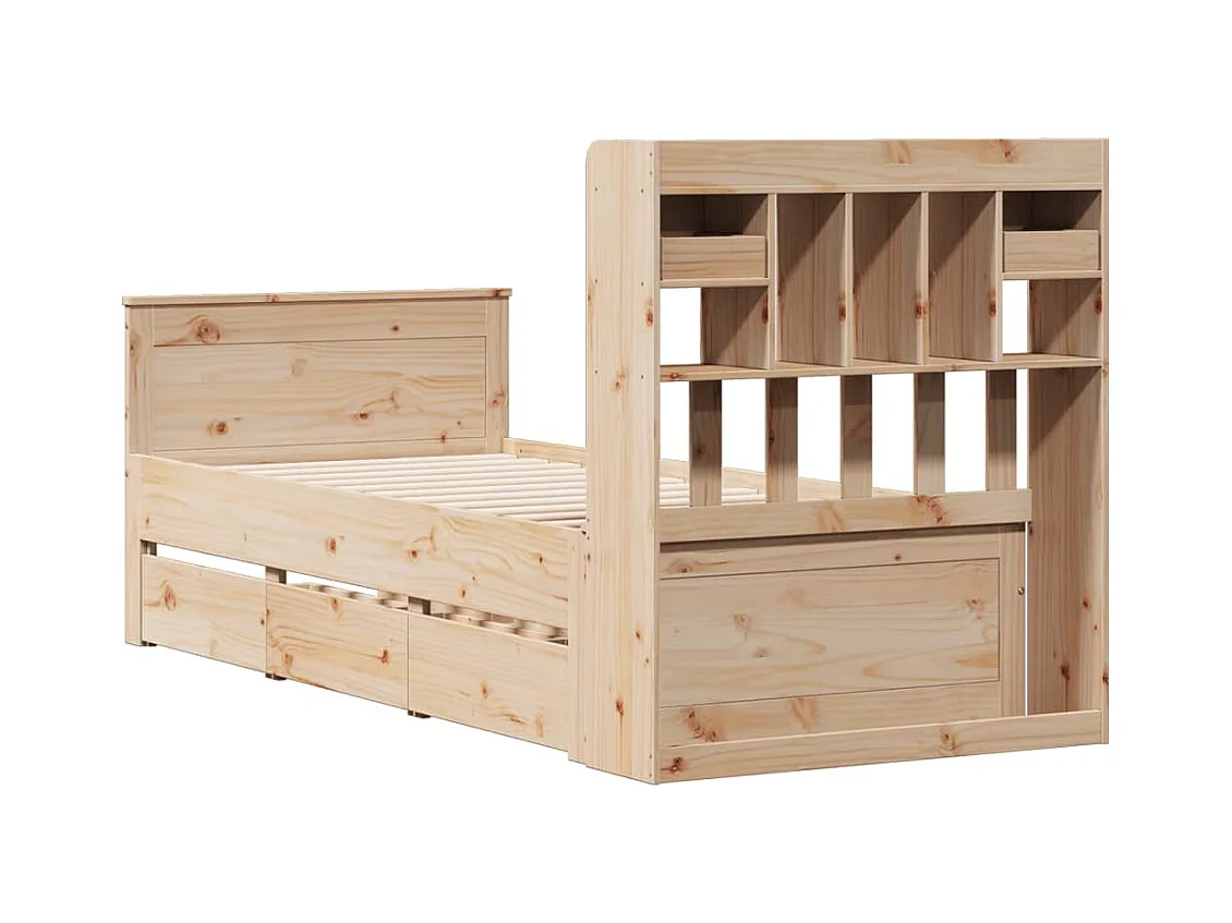 Lit bibliothèque sans matelas 75x190 cm bois de pin massif