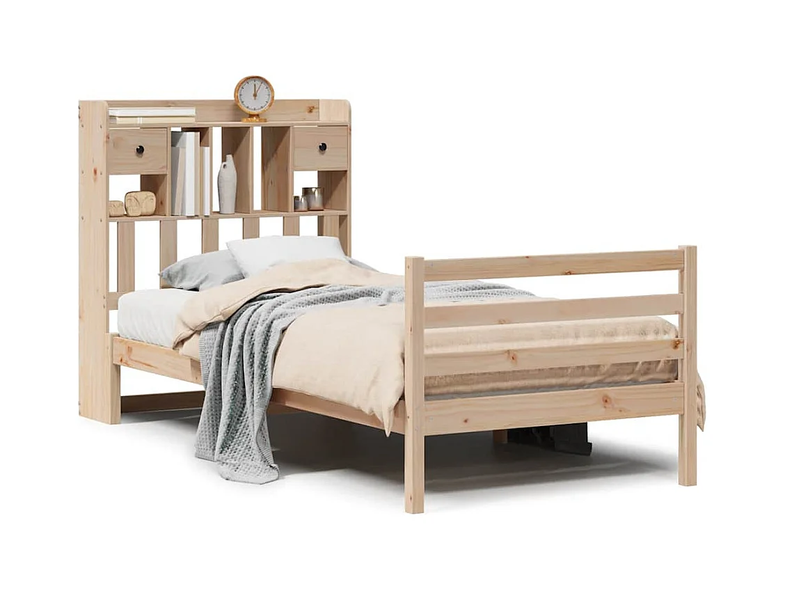 Lit bibliothèque sans matelas 75x190 cm bois de pin massif