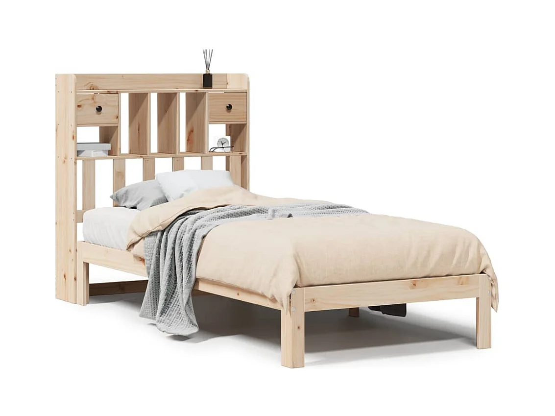 Lit bibliothèque sans matelas 90x200 cm bois de pin massif