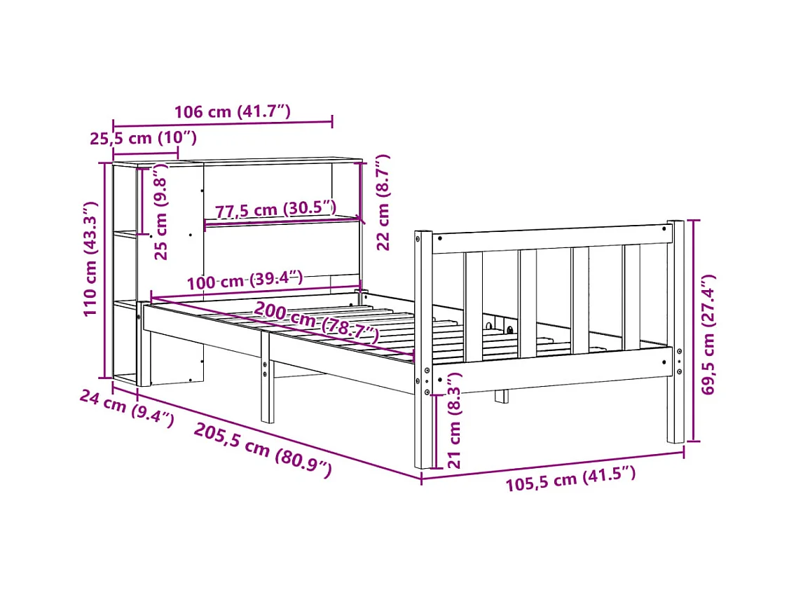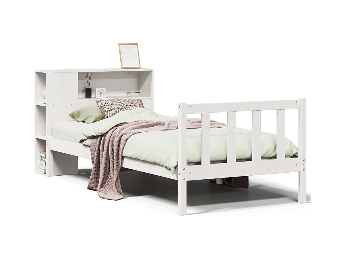 Lit bibliothèque sans matelas blanc 100x200 cm bois pin massif