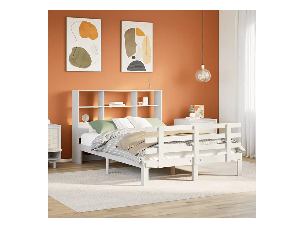 Lit bibliothèque sans matelas blanc 120x190 cm bois pin massif