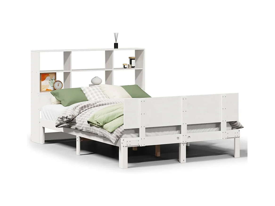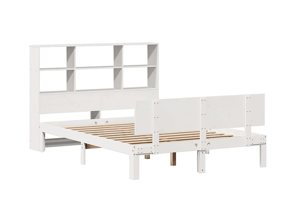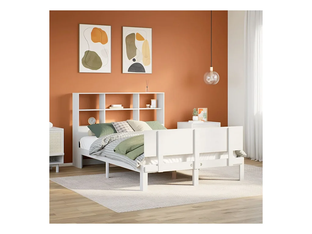 Lit bibliothèque sans matelas blanc 120x190 cm bois pin massif