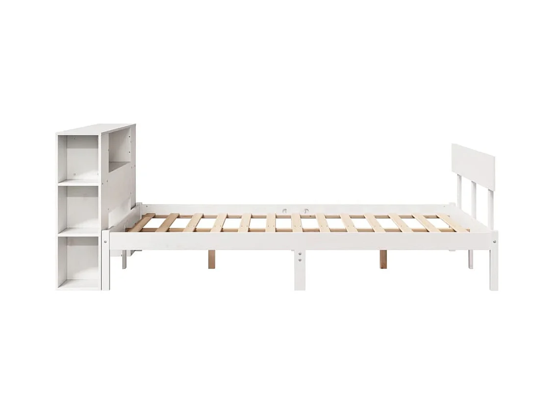 Lit bibliothèque sans matelas blanc 135x190 cm bois pin massif