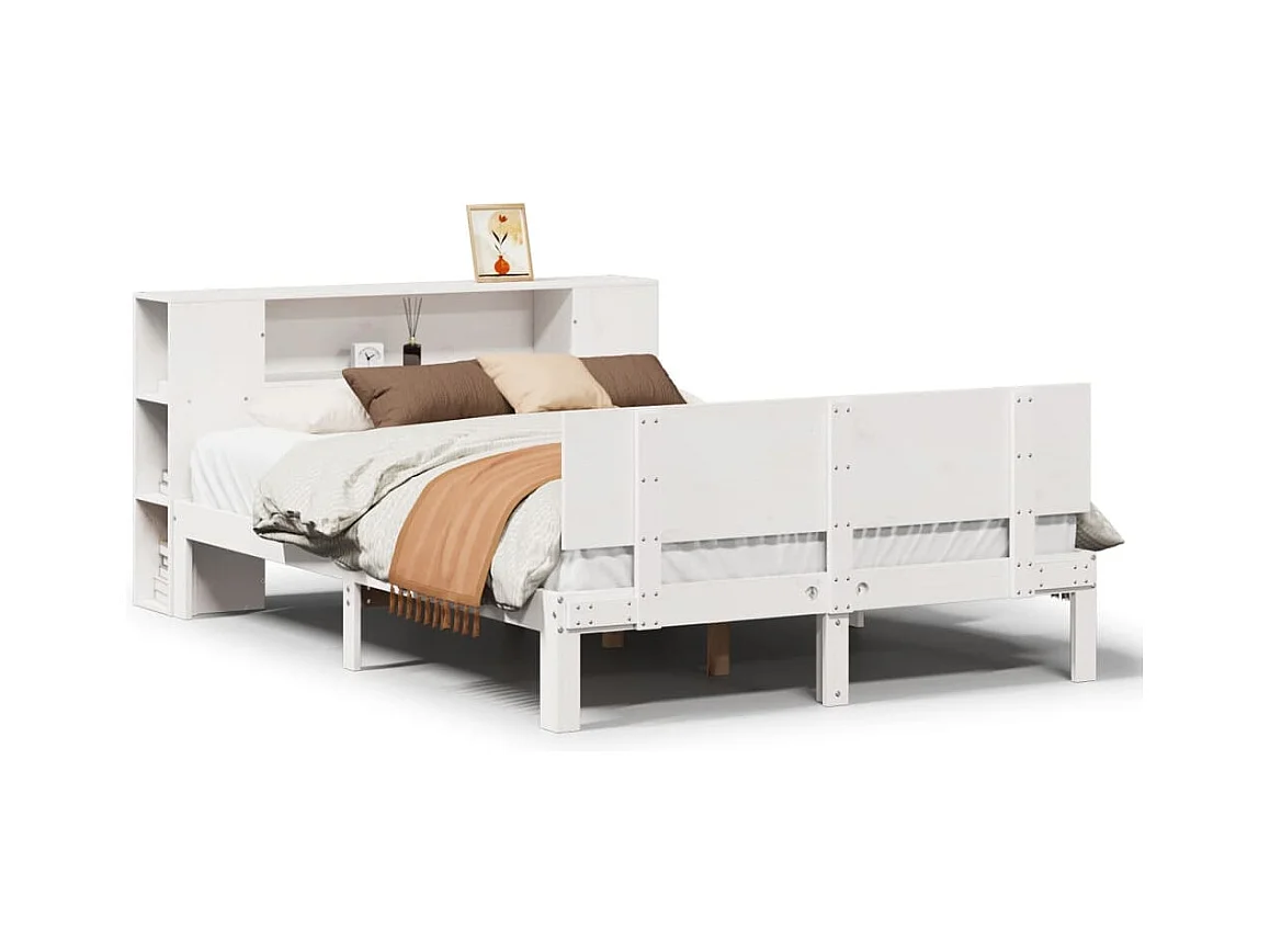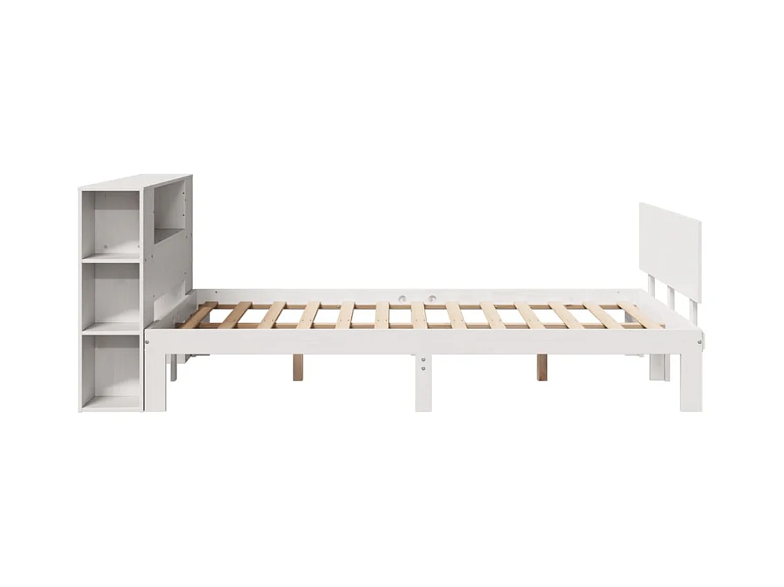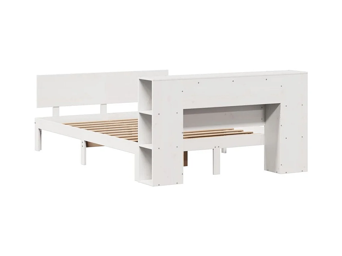 Lit bibliothèque sans matelas blanc 140x190 cm bois pin massif