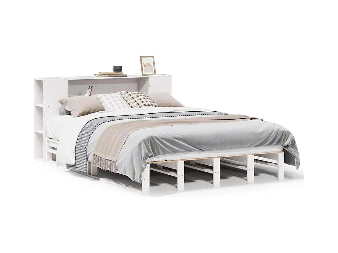 Lit bibliothèque sans matelas blanc 140x200 cm bois massif