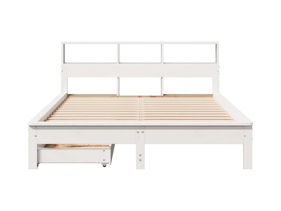 Lit bibliothèque sans matelas blanc 150x200 cm bois pin massif