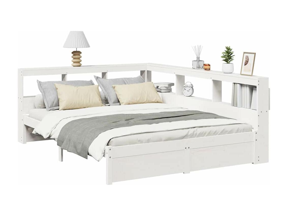 Lit bibliothèque sans matelas blanc 150x200 cm bois pin massif