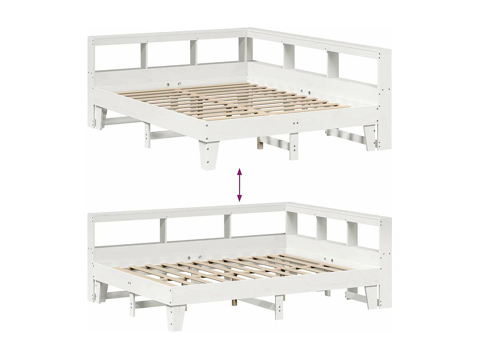 Lit bibliothèque sans matelas blanc 150x200 cm bois pin massif