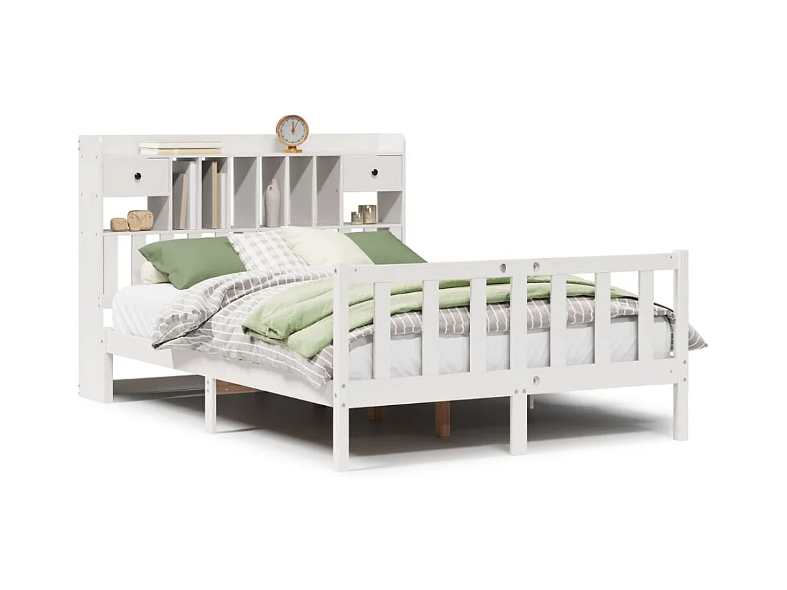 Lit bibliothèque sans matelas blanc 160x200 cm bois pin massif