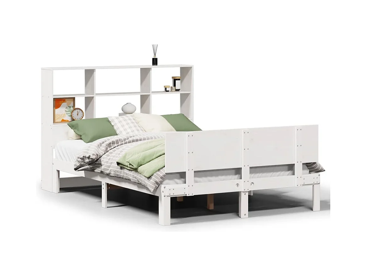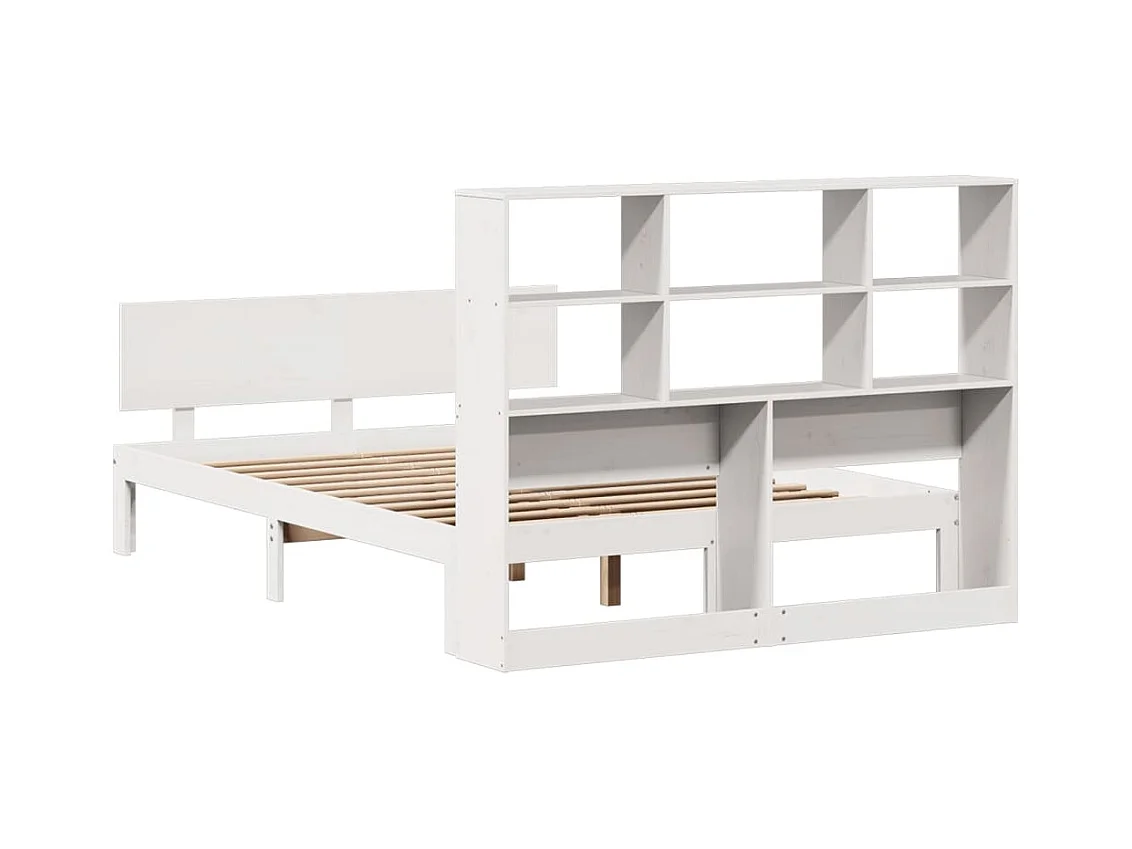 Lit bibliothèque sans matelas blanc 160x200 cm bois pin massif