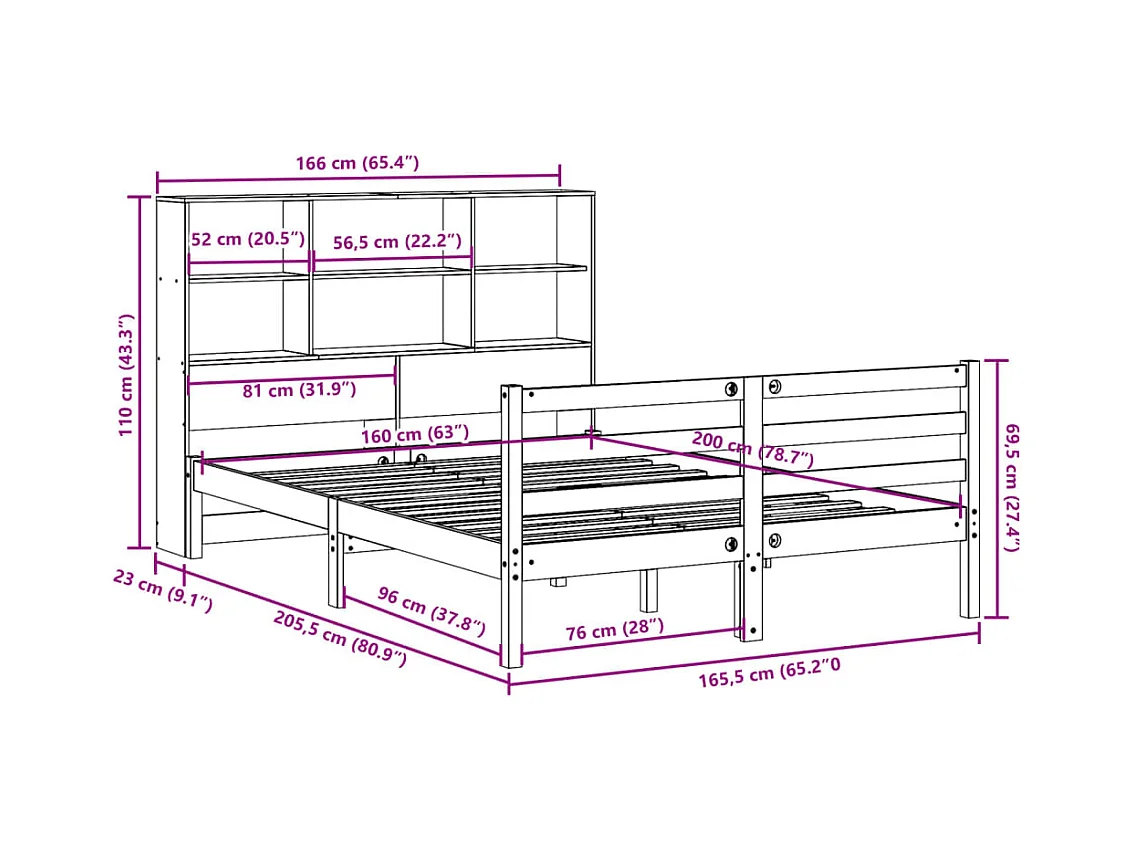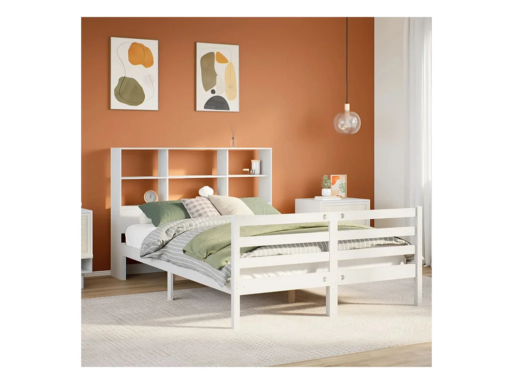 Lit bibliothèque sans matelas blanc 160x200 cm bois pin massif