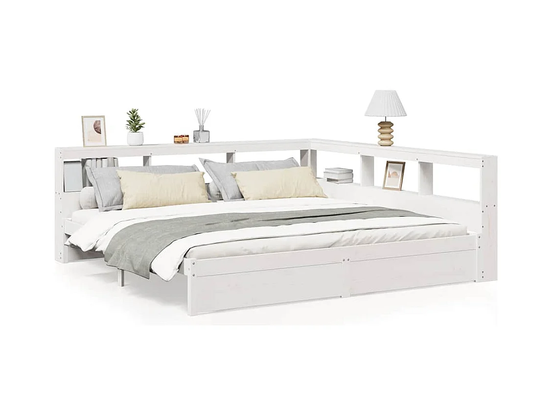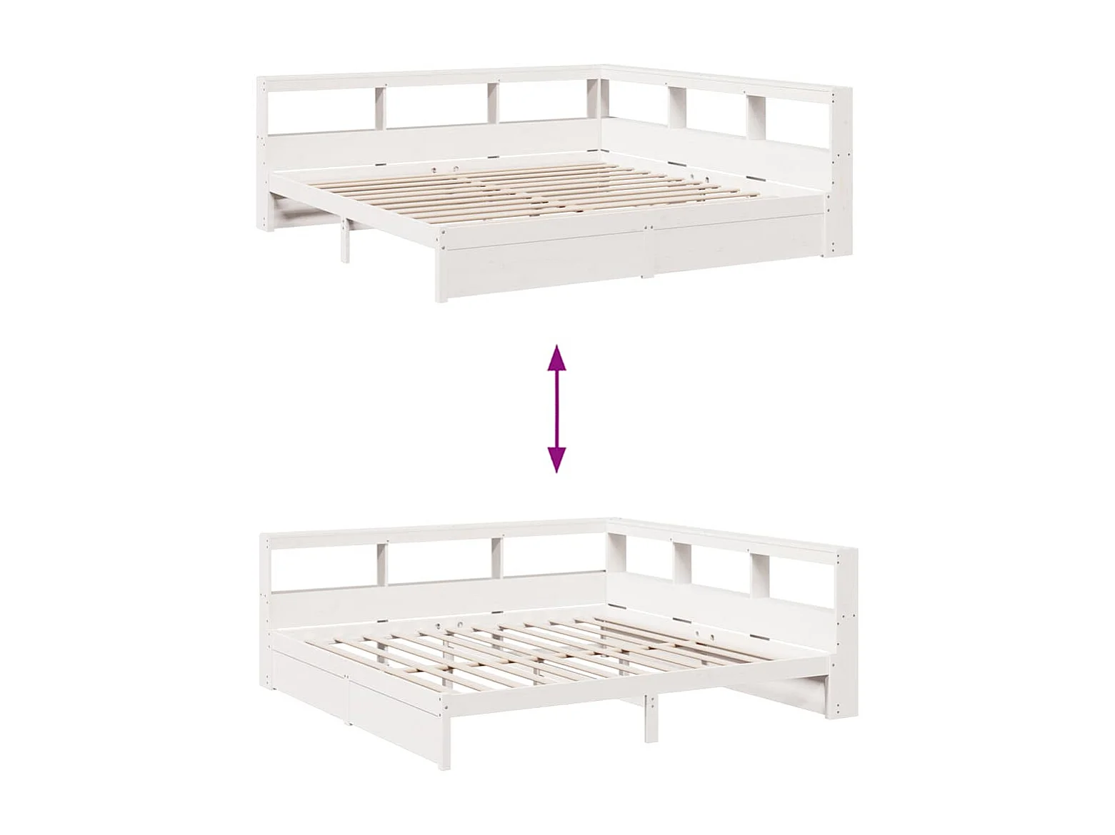 Lit bibliothèque sans matelas blanc 180x200 cm bois pin massif