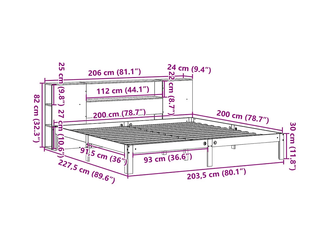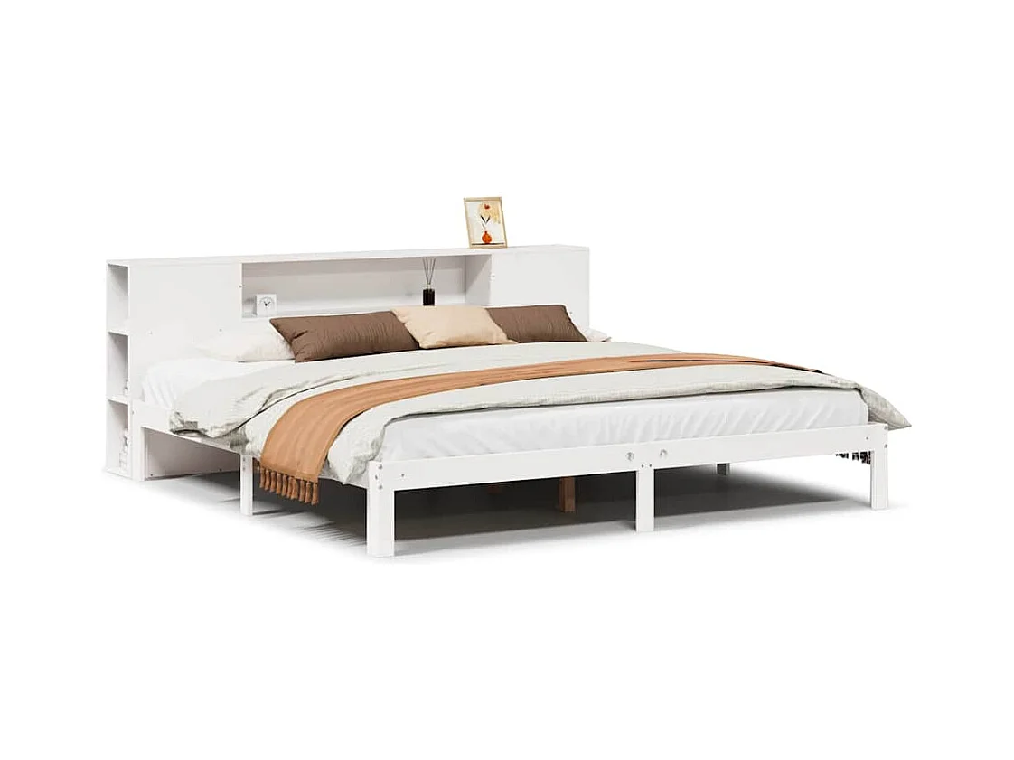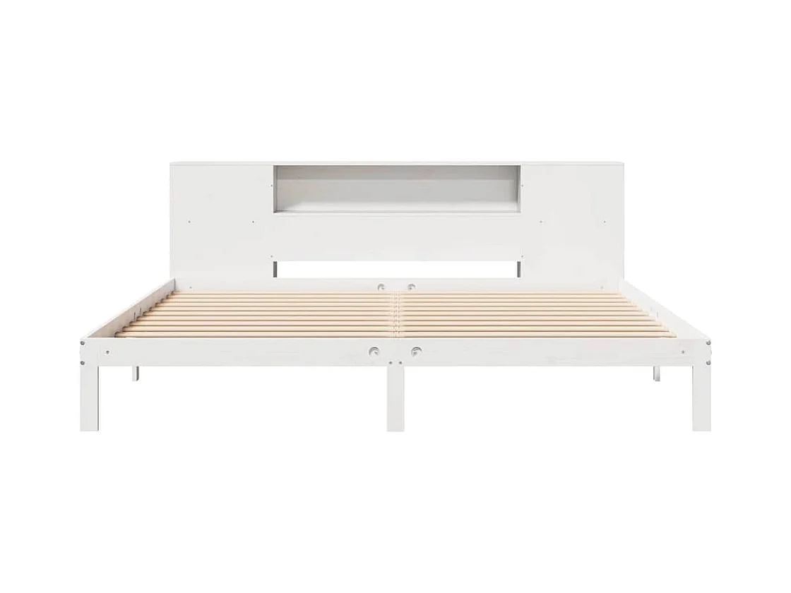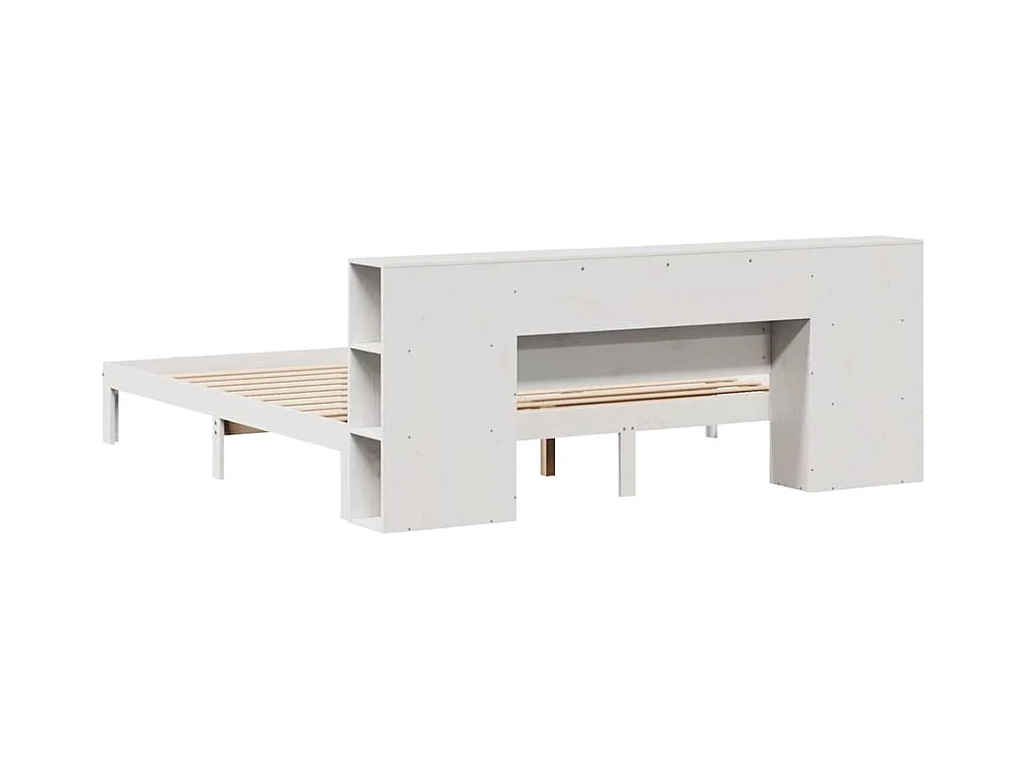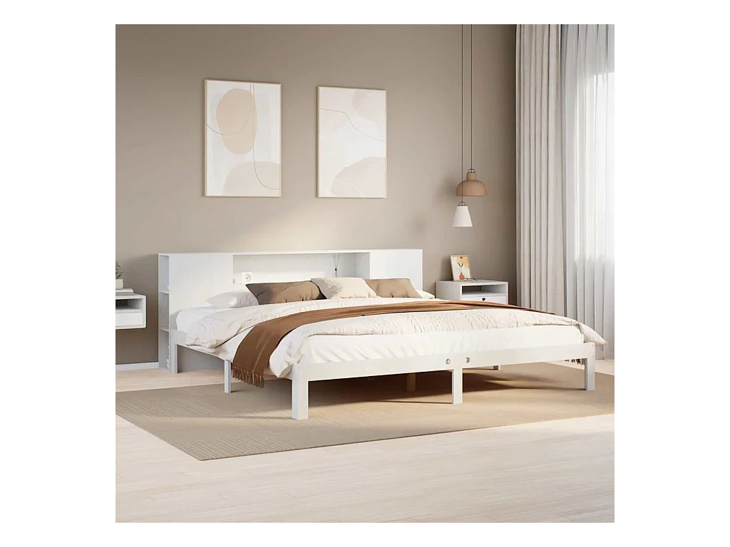 Lit bibliothèque sans matelas blanc 200x200 cm bois pin massif