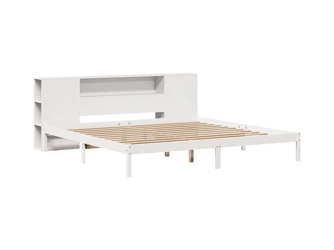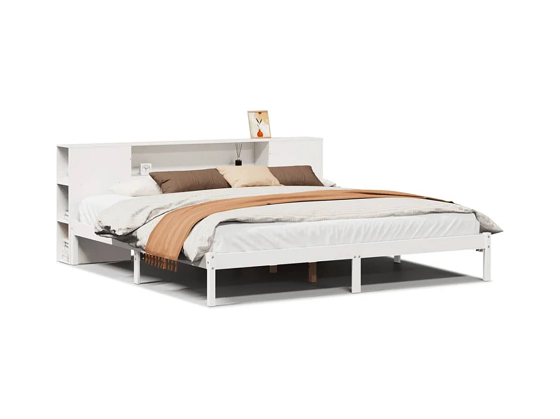 Lit bibliothèque sans matelas blanc 200x200 cm bois pin massif