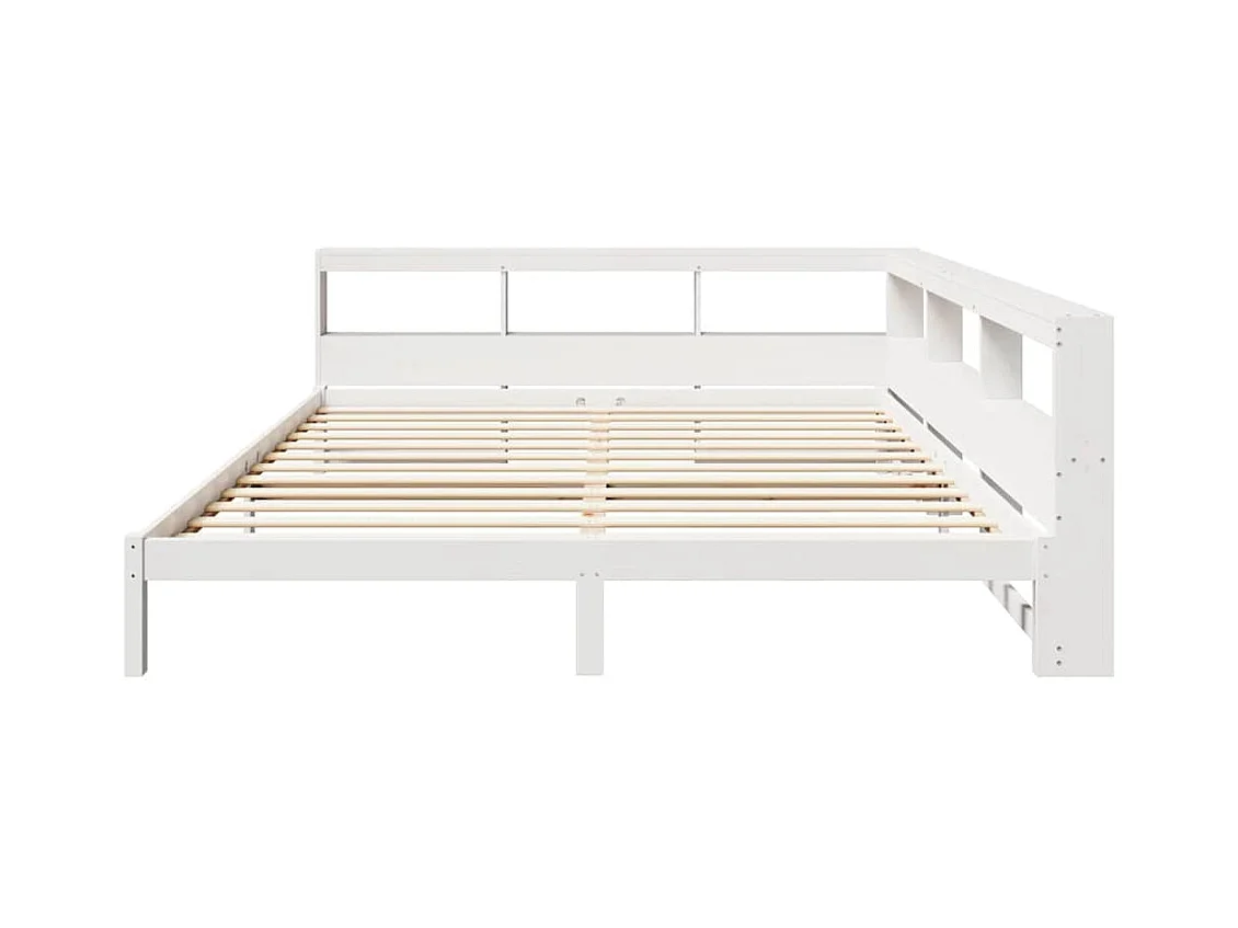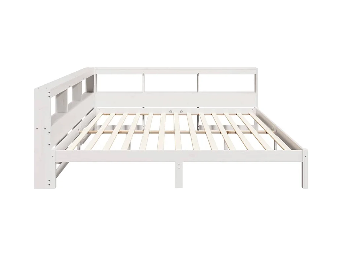 Lit bibliothèque sans matelas blanc 200x200 cm bois pin massif