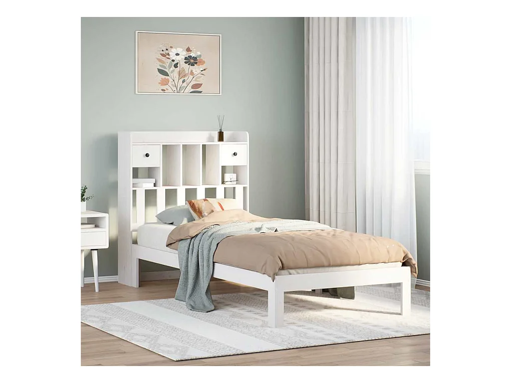 Lit bibliothèque sans matelas blanc 75x190cm bois de pin massif