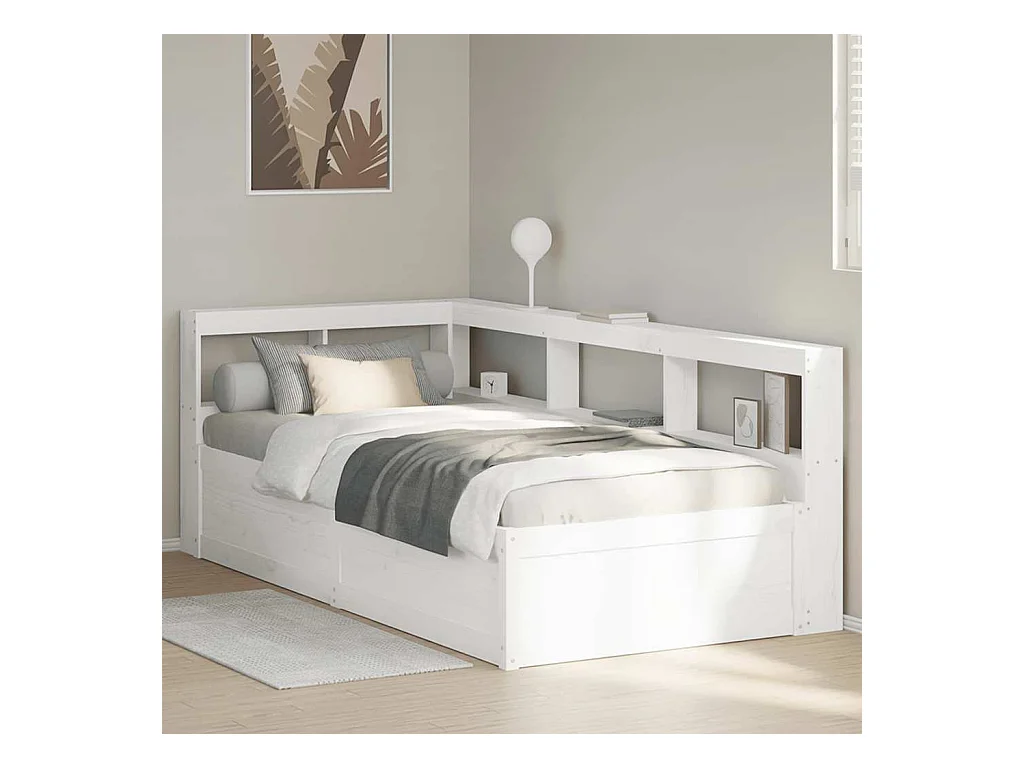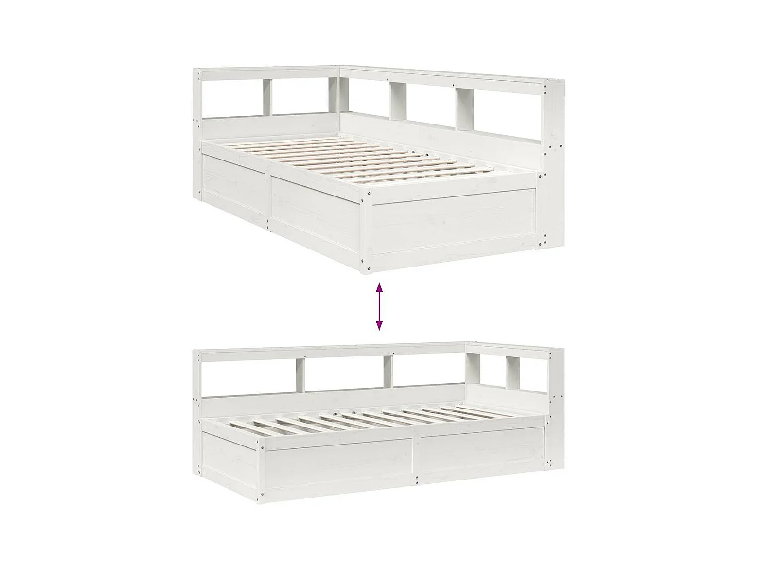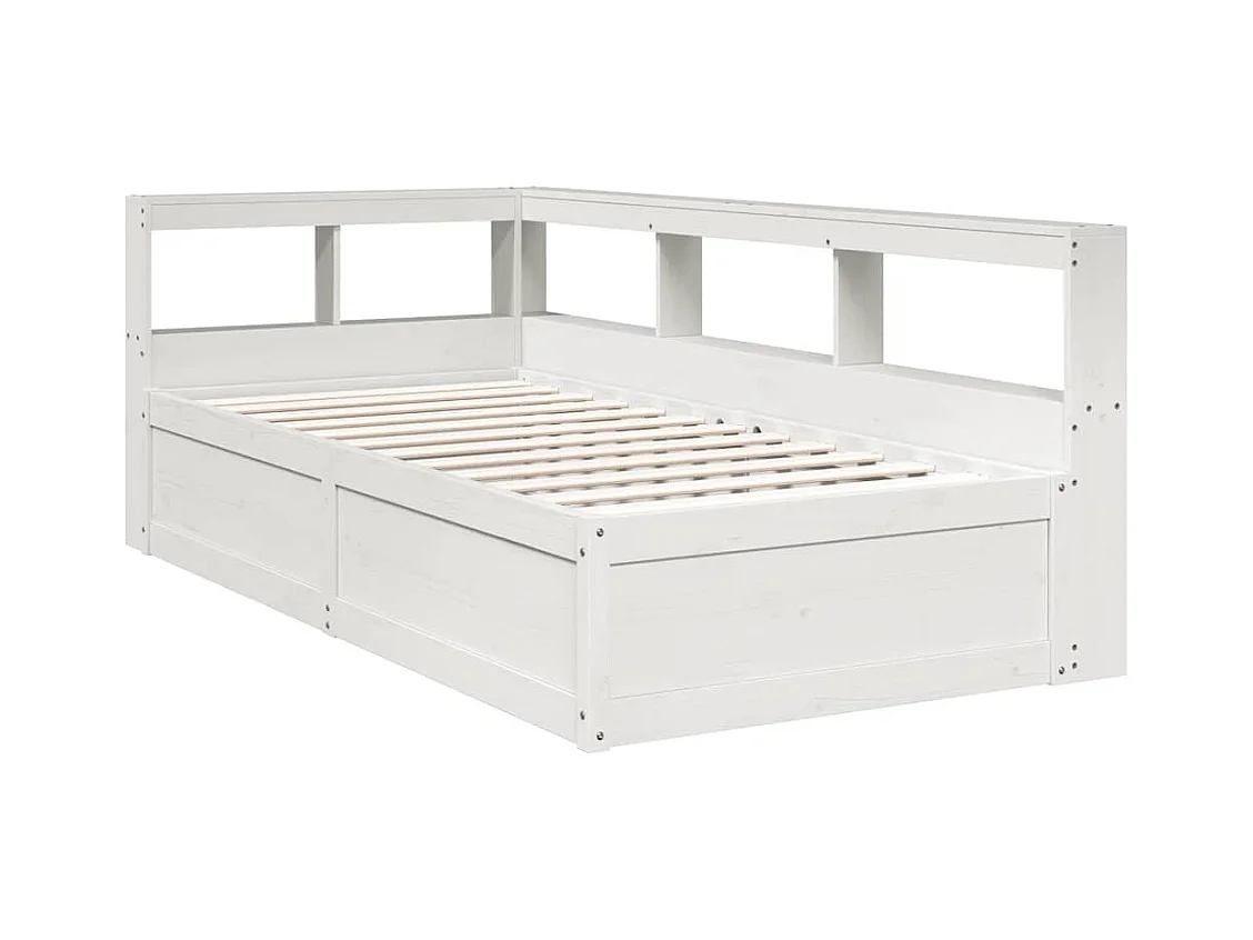 Lit bibliothèque sans matelas blanc 75x190cm bois de pin massif